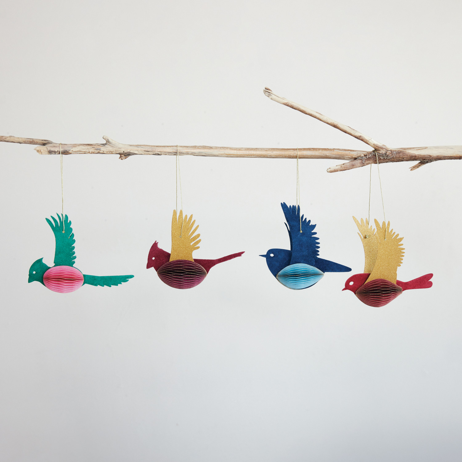 Handmade Recycled Paper Folding Honeycomb Bird Ornament with Glitter, 4 Styles