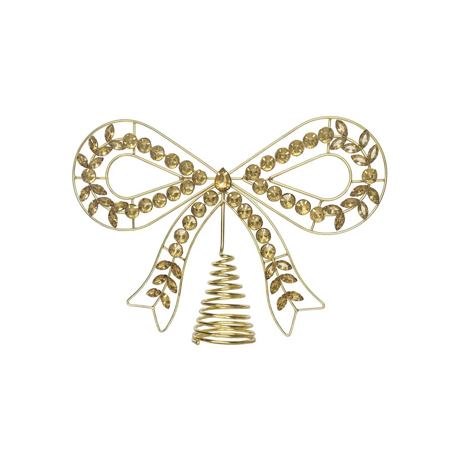 Metal & Acrylic Jewel Bow Shaped Tree Topper, Gold Finish