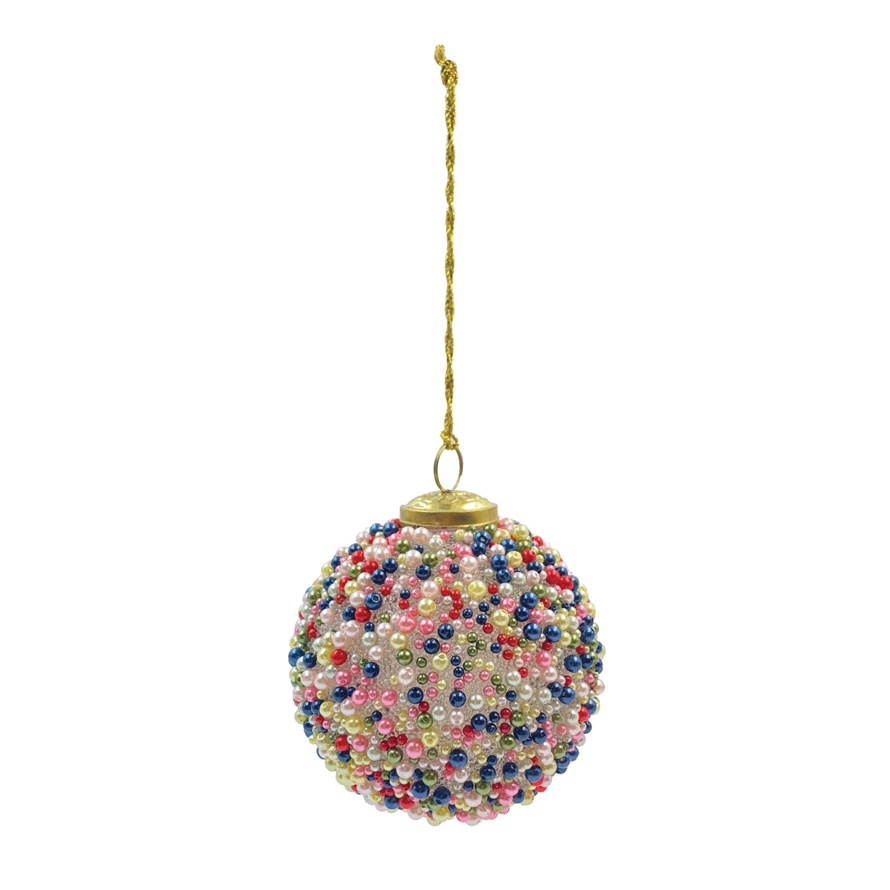 Catalog Name: 4" Round Beaded Glass Ball Ornament, Multi Color (Each One Will Vary)