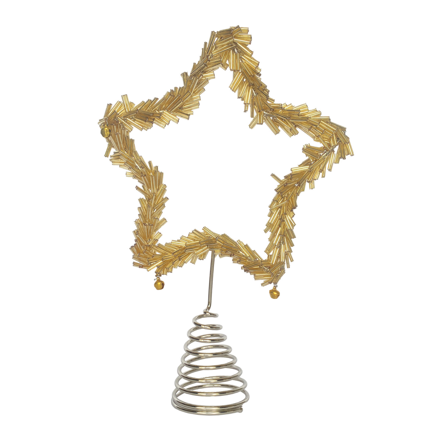 Catalog Name: 7"L x 2-1/4"W x 10"H Metal & Glass Beaded Star Tree Topper w/ Jingle Bells, Gold & Silver Finish