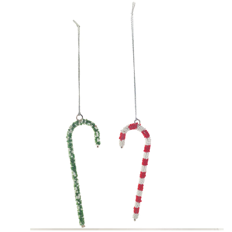Catalog Name: 6"H Glass Beaded Metal Candy Cane Ornament, 2 Styles