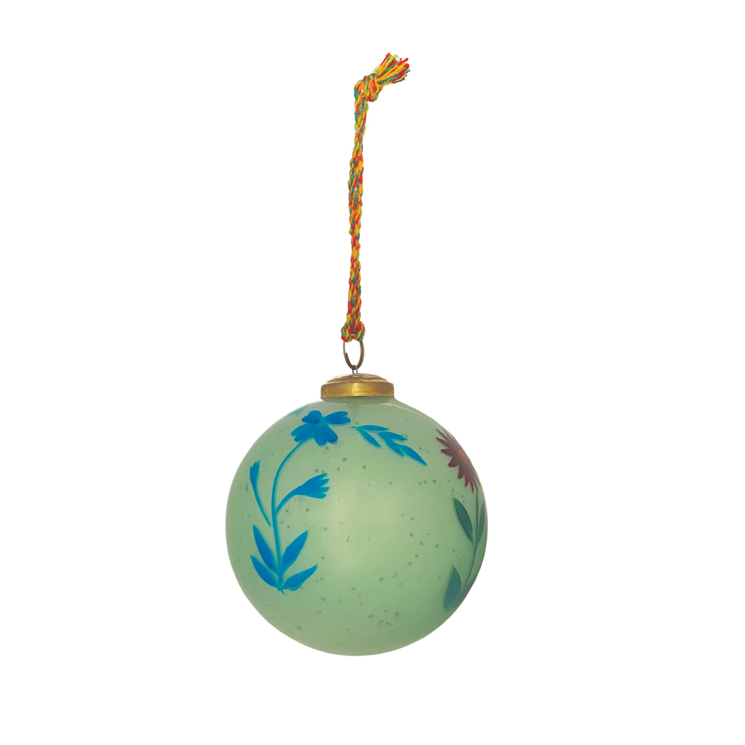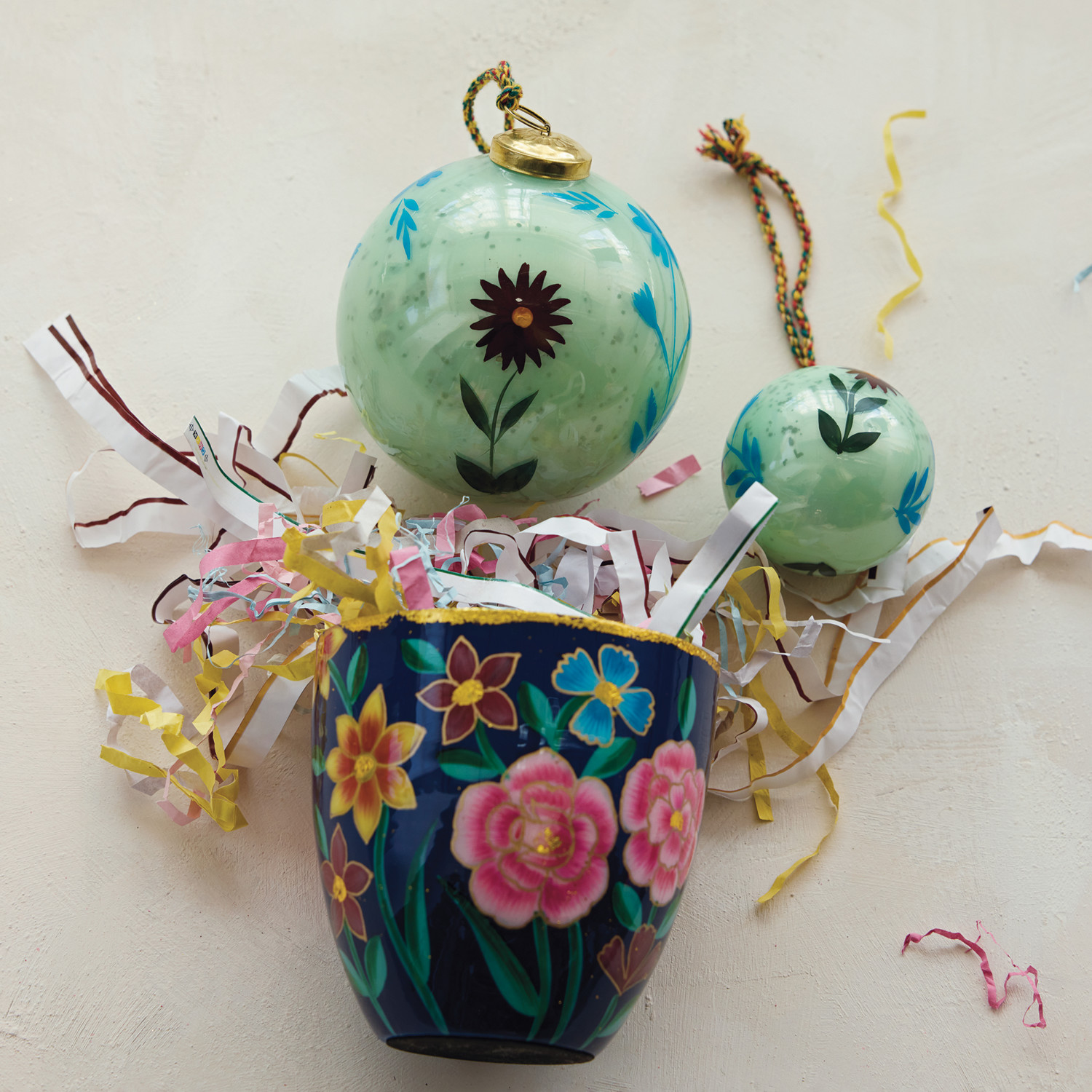 Hand-Painted Mercury Glass Ball Ornament with Flowers