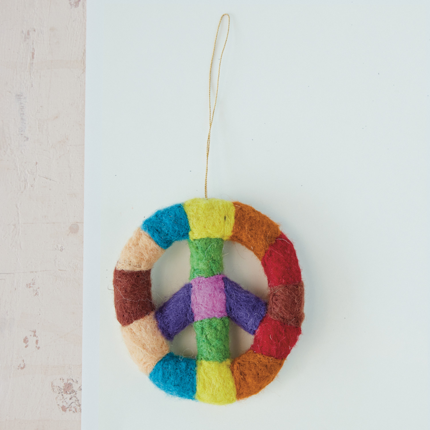 Catalog Name: 4-1/2" Round Handmade Wool Felt Striped Peace Sign Ornament, Multi Color