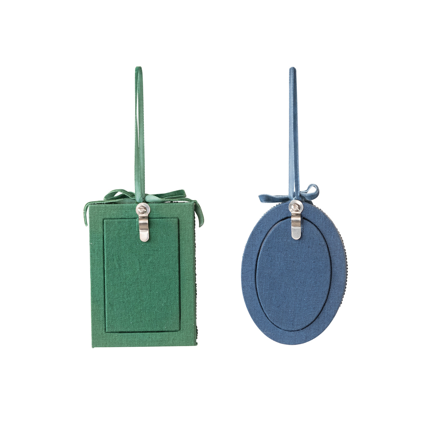 Catalog Name: Approximately 3-1/2"H Glass Beaded Photo Frame Ornament w/ Velvet Bow & Hanger, Multi Color, 2 Styles ©