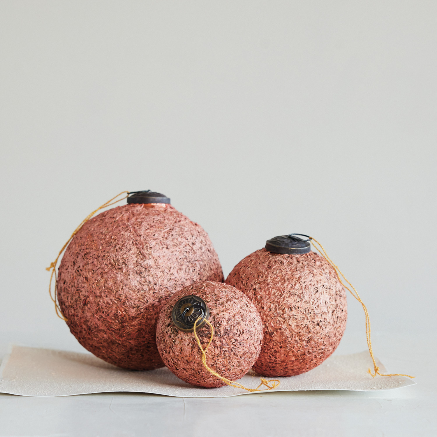 Catalog Name: 4" Round Foiled Glass Ball Ornament, Pink