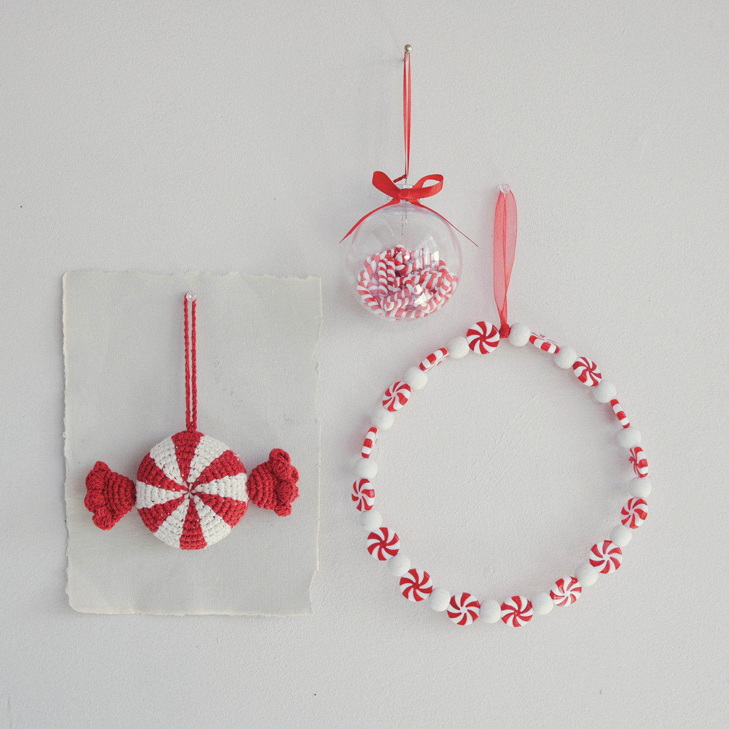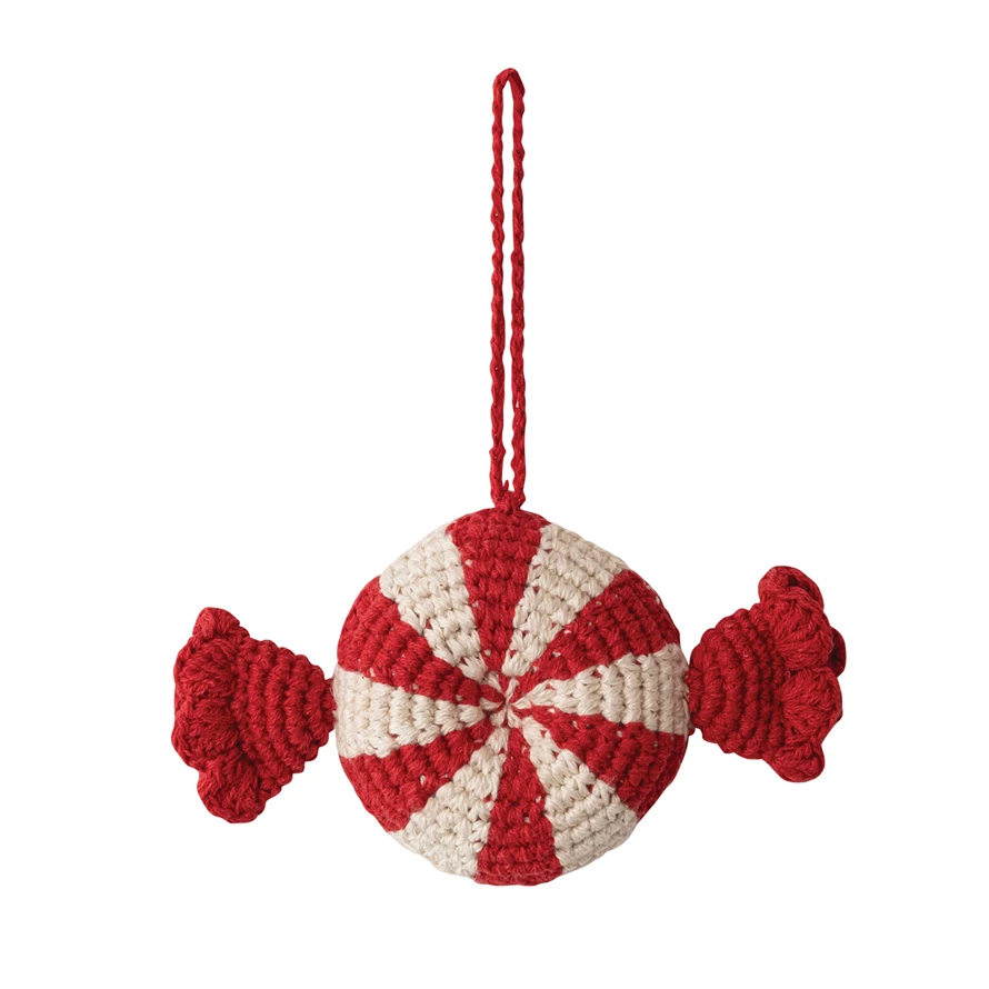 Cotton Crocheted Candy Shaped Ornament, Red & White