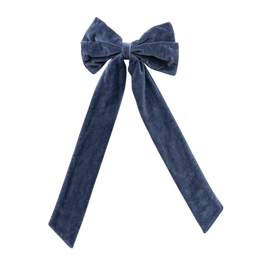 Catalog Name: 10"W x 21"H Cotton Velvet Clip-on Bow, Navy Color