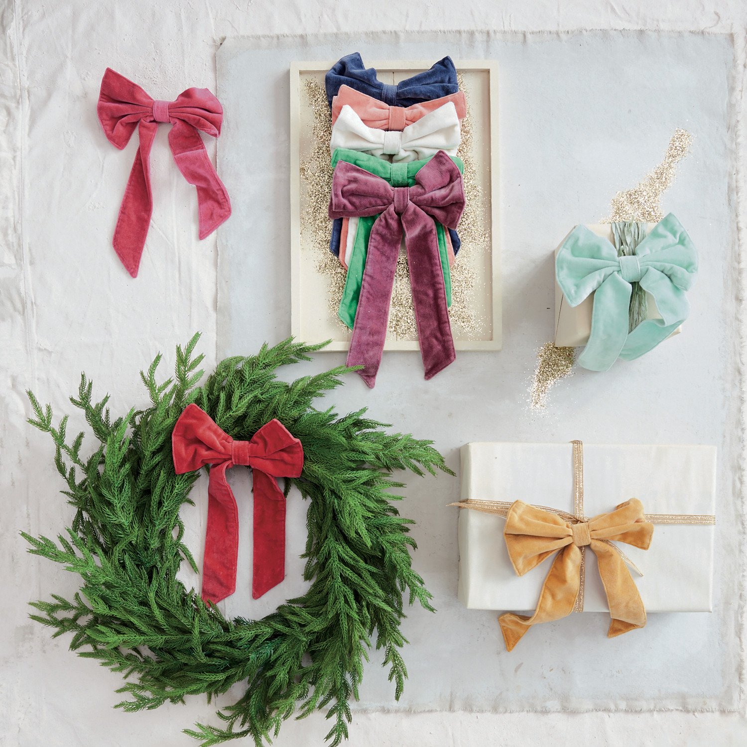 Catalog Name: 8"W x 13"H Cotton Velvet Clip-on Bow, Mint Color