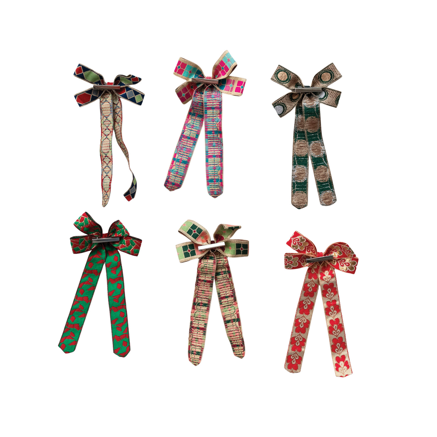 Fabric Jacquard Clip-on Bow with Pattern, 6 Styles