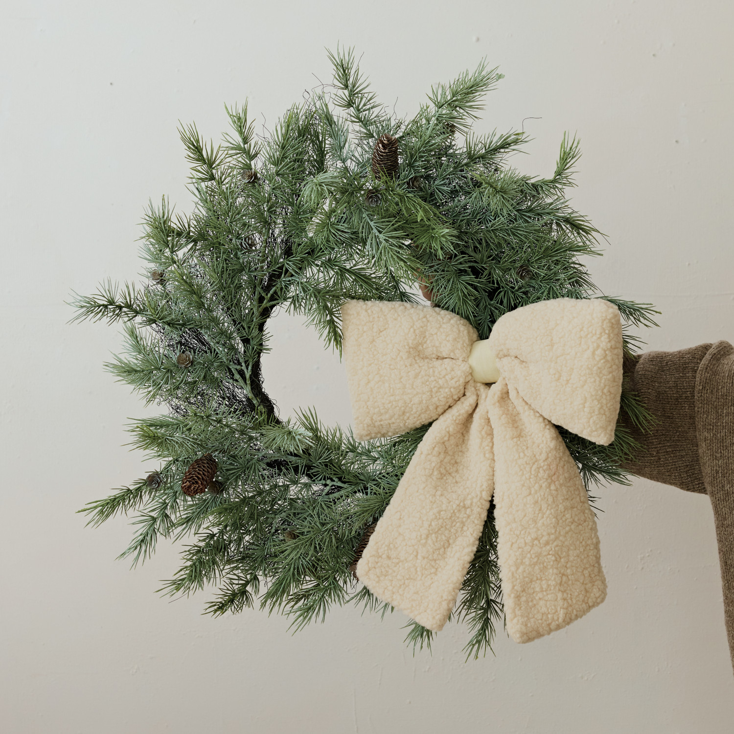Catalog Name: 21"W x 15"H Faux Sherpa Clip-on Bow, Cream Color