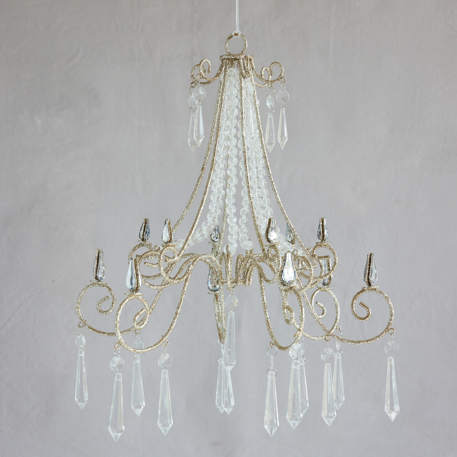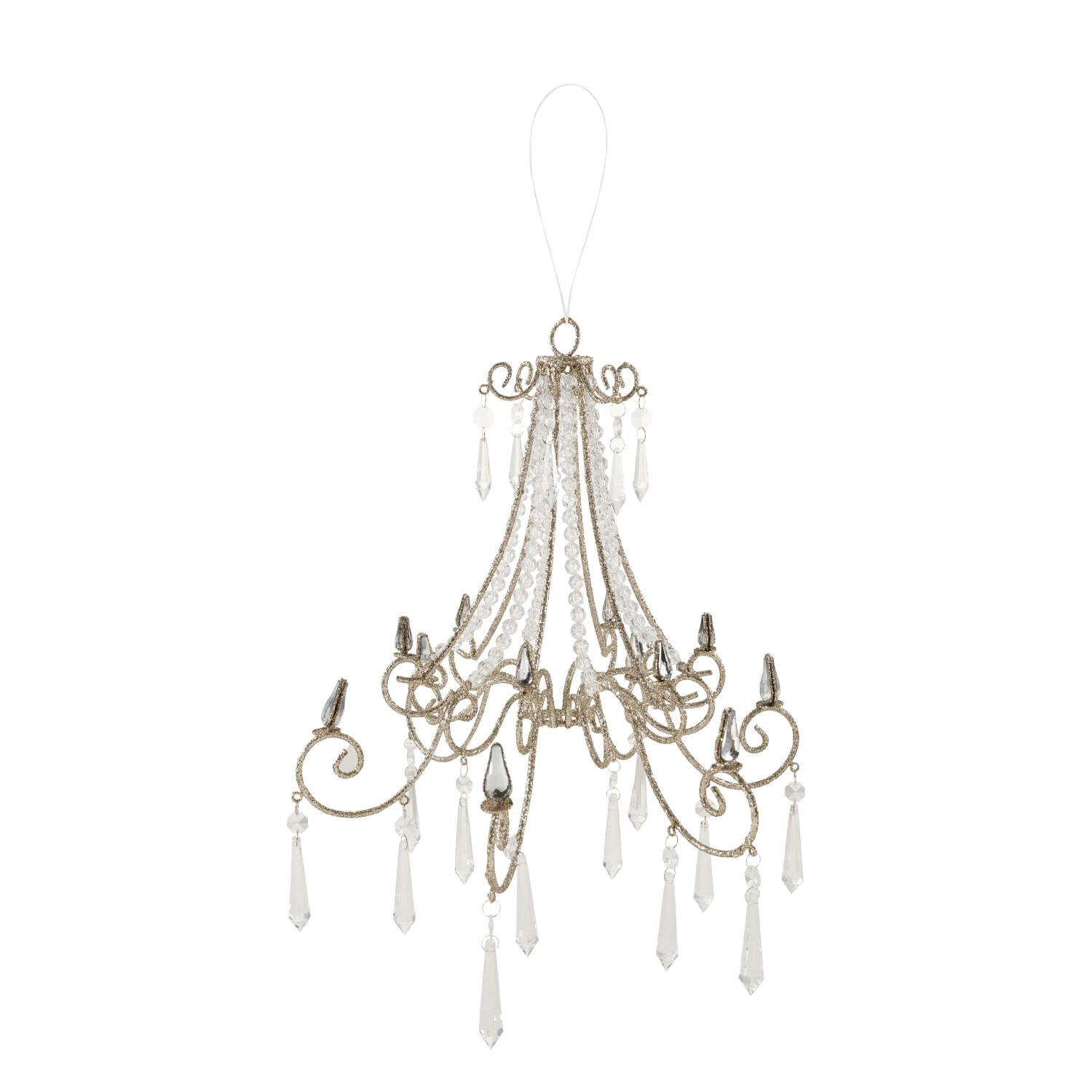 Oversized Metal Chandelier Ornament with Acrylic Crystals & Glitter