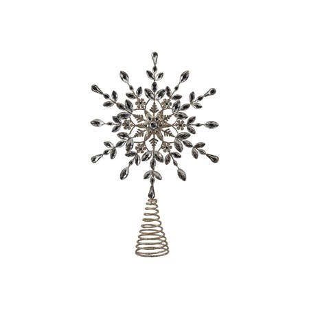 Catalog Name: 8"L x 2-3/4"W x 11"H Metal Bow Tree Topper w/ Acrylic Jewels & Glitter, Champagne Finish