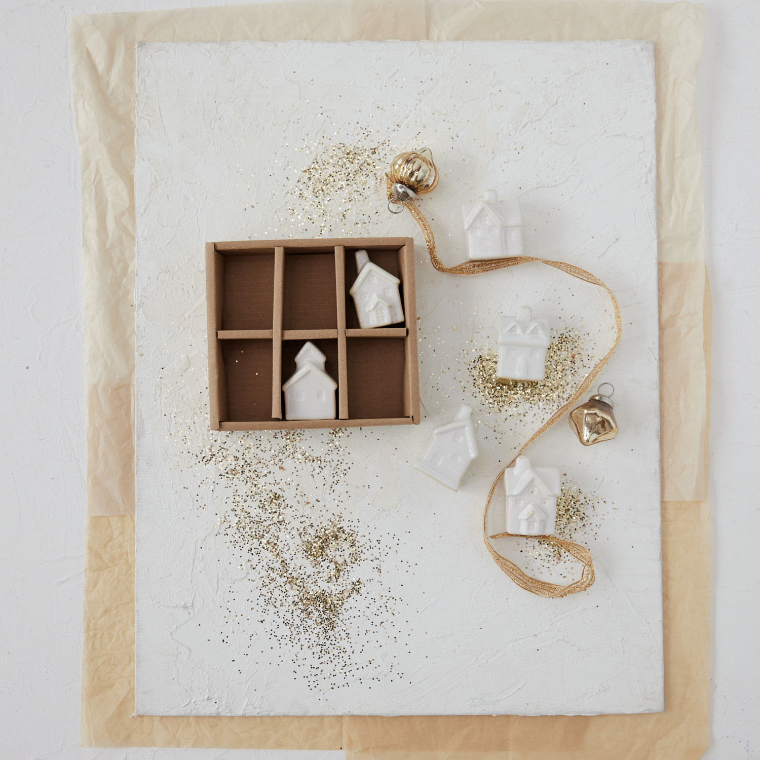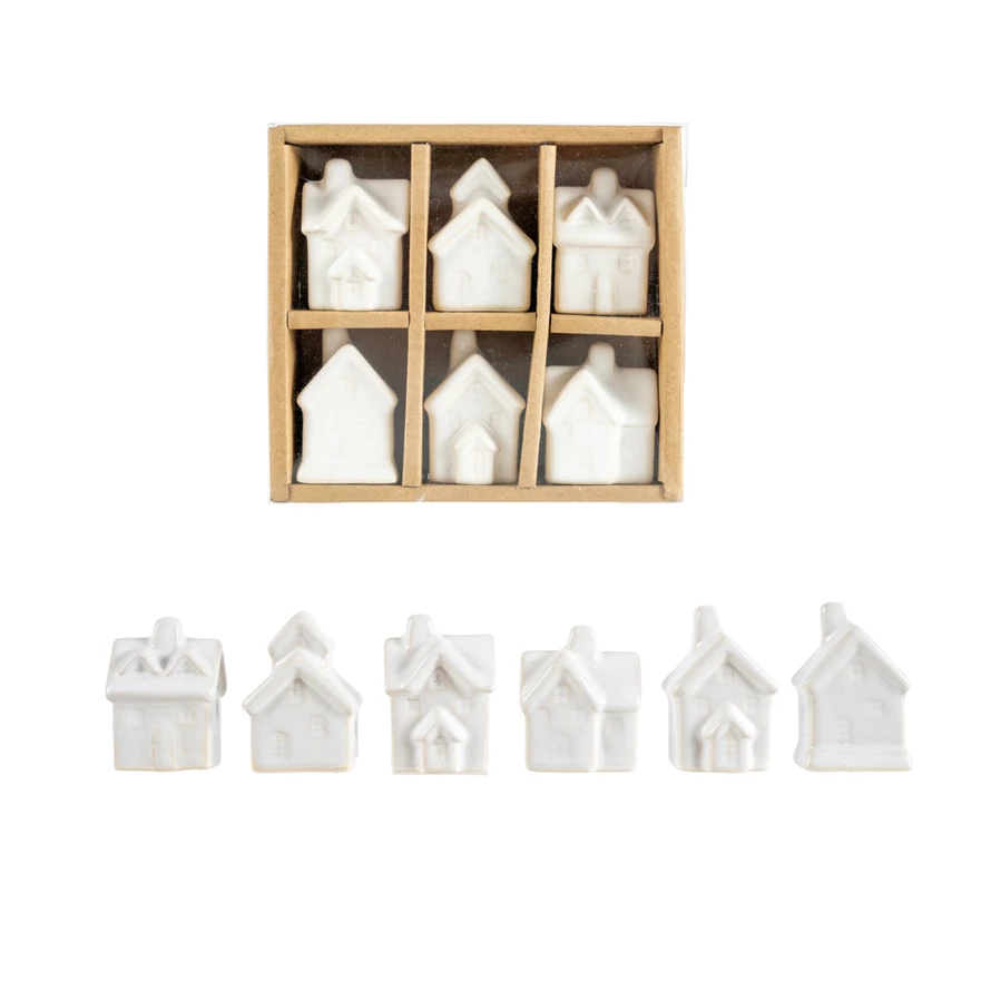 Catalog Name: Approximately 2"H Stoneware Village, White, Set of 6