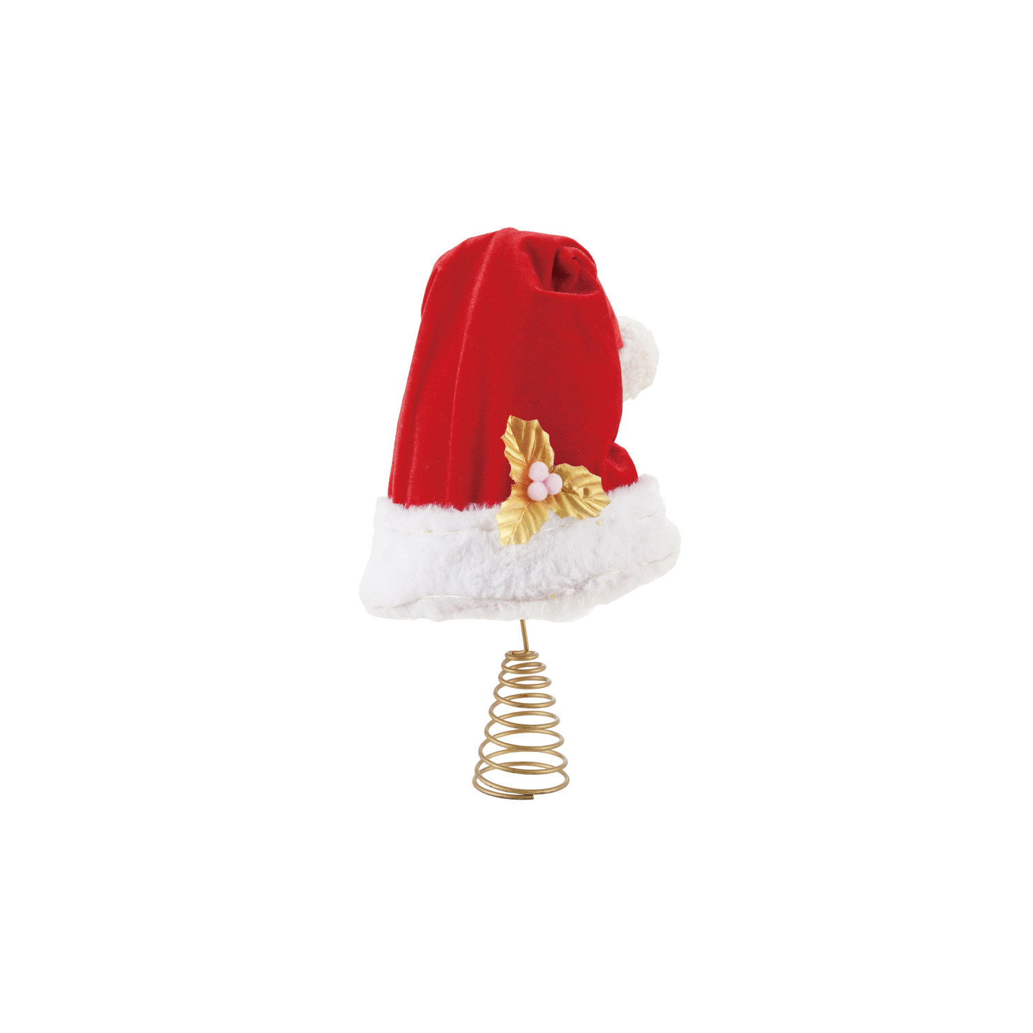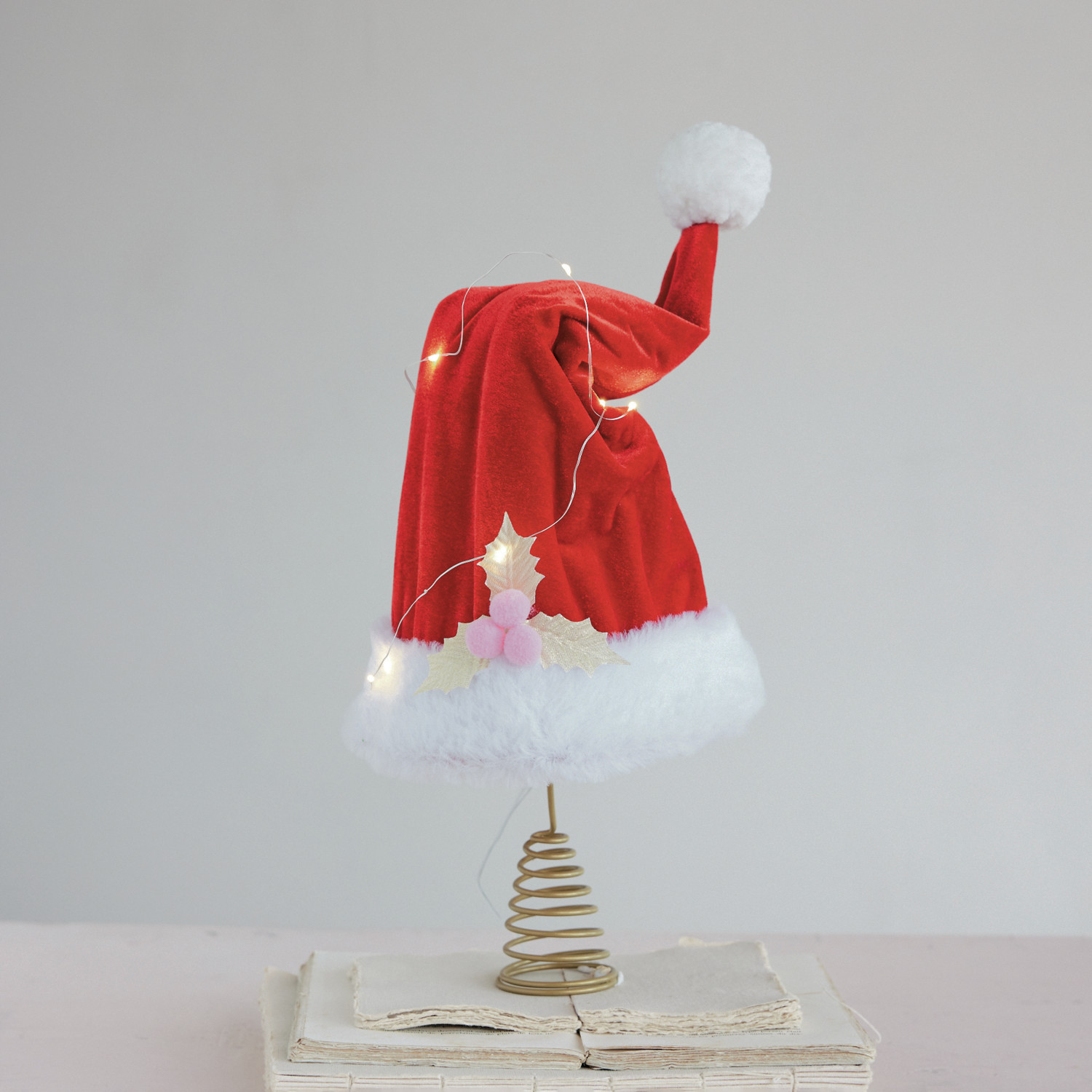 Catalog Name: 9"L x 7"W x 12"H Fabric Santa Hat Tree Topper w/ LED Light, Multi Color (Requires 2-AA Batteries)