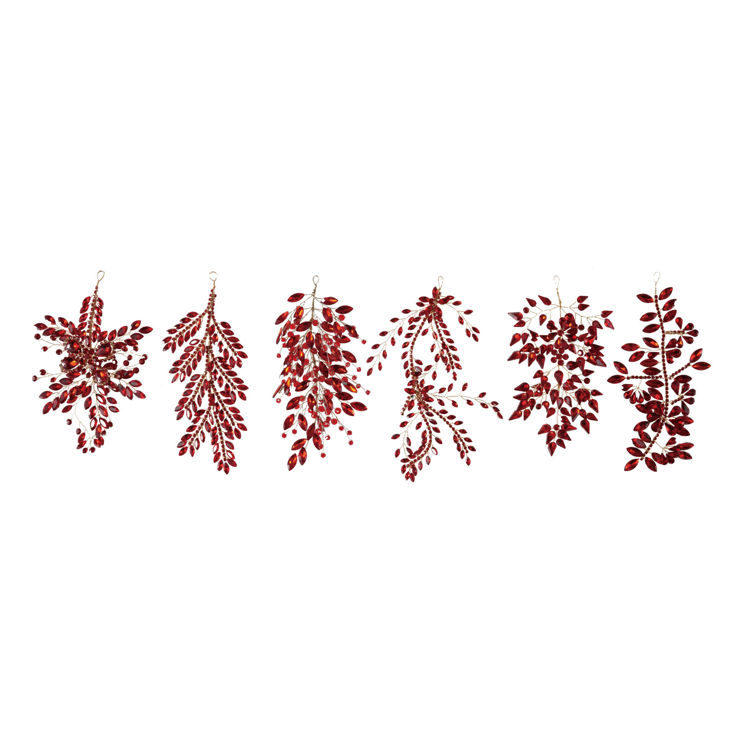 Catalog Name: 6-1/4"H - 8"H Acrylic & Wire Jeweled Ornament, Red, 6 Styles
