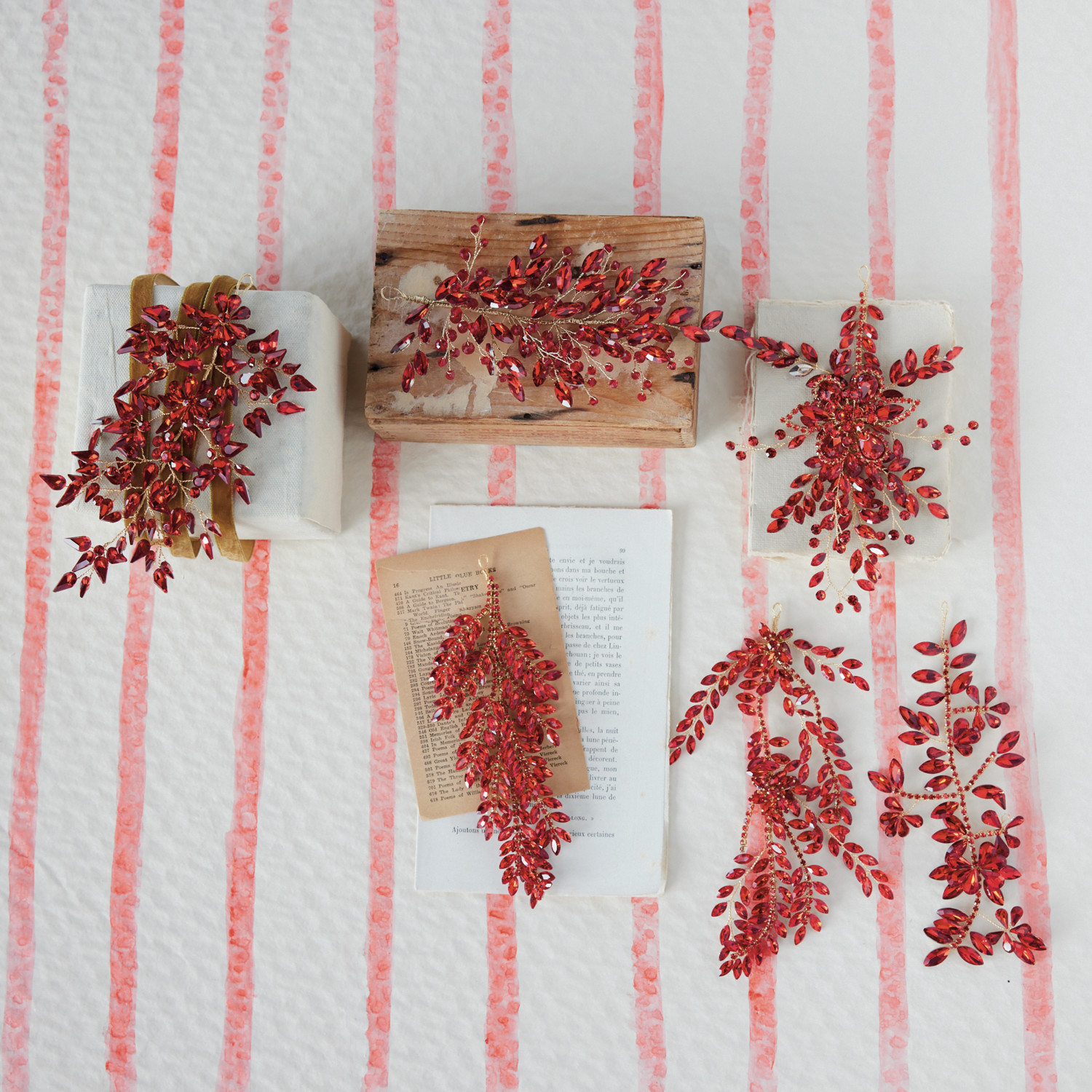 Acrylic & Wire Jeweled Ornament, Red, 6 Styles