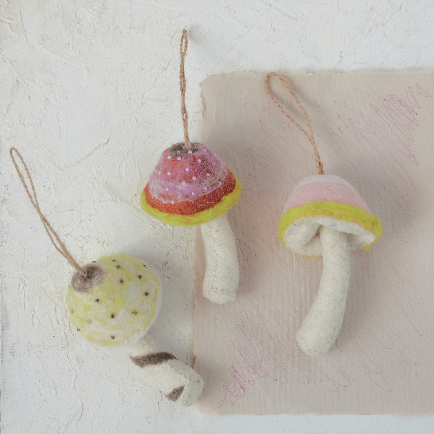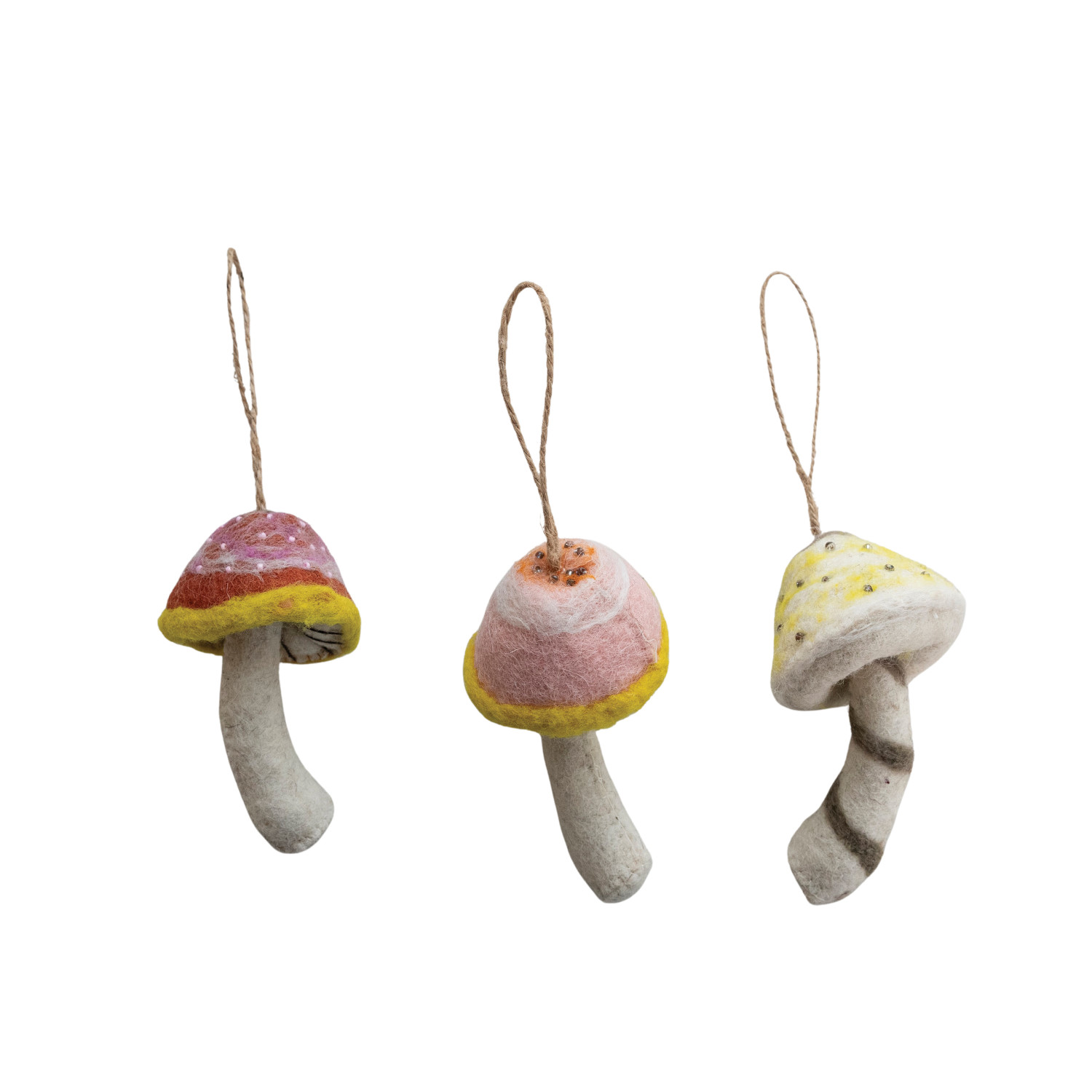 Handmade Wool Felt Mushroom Ornament with Embroidery & Beads, 3 Styles
