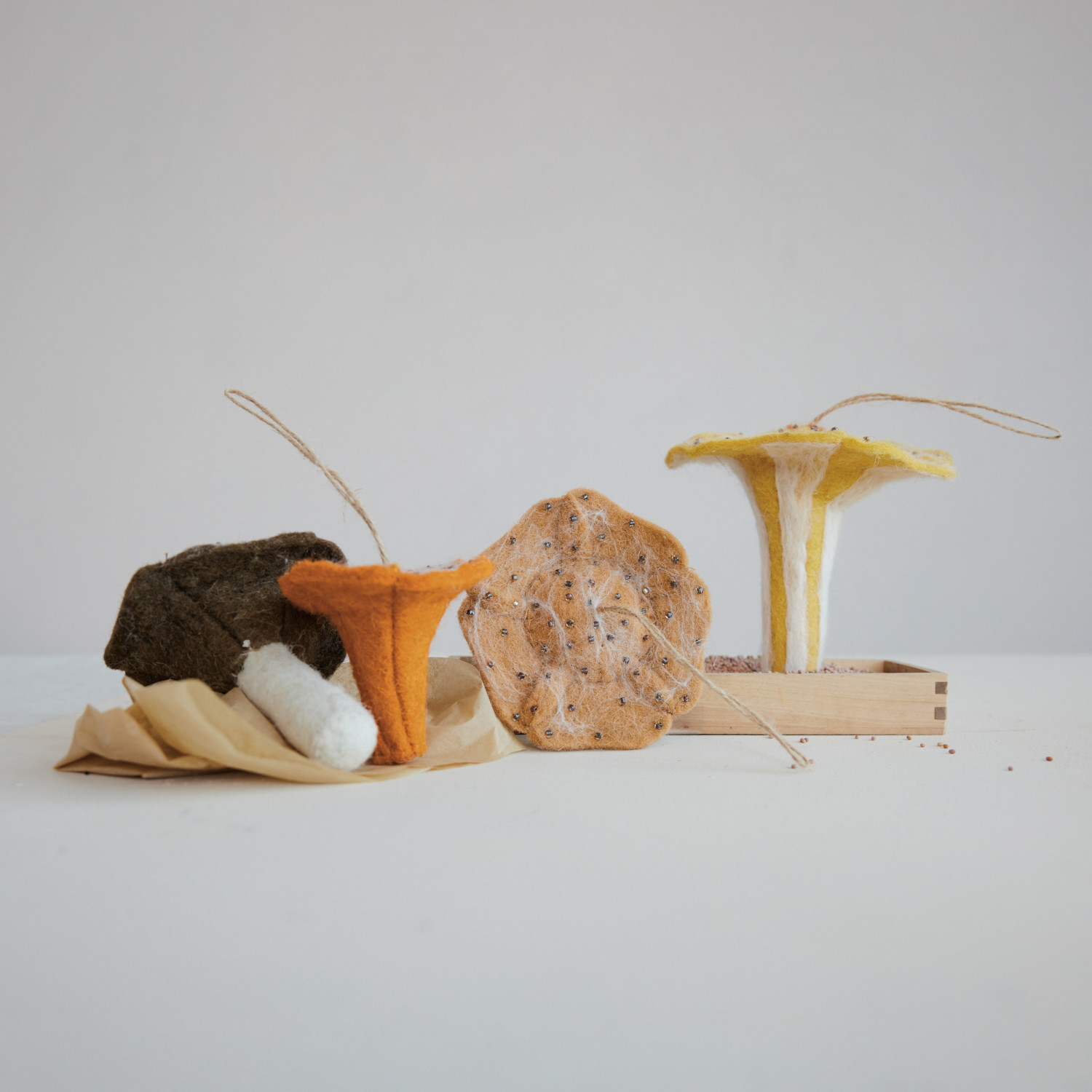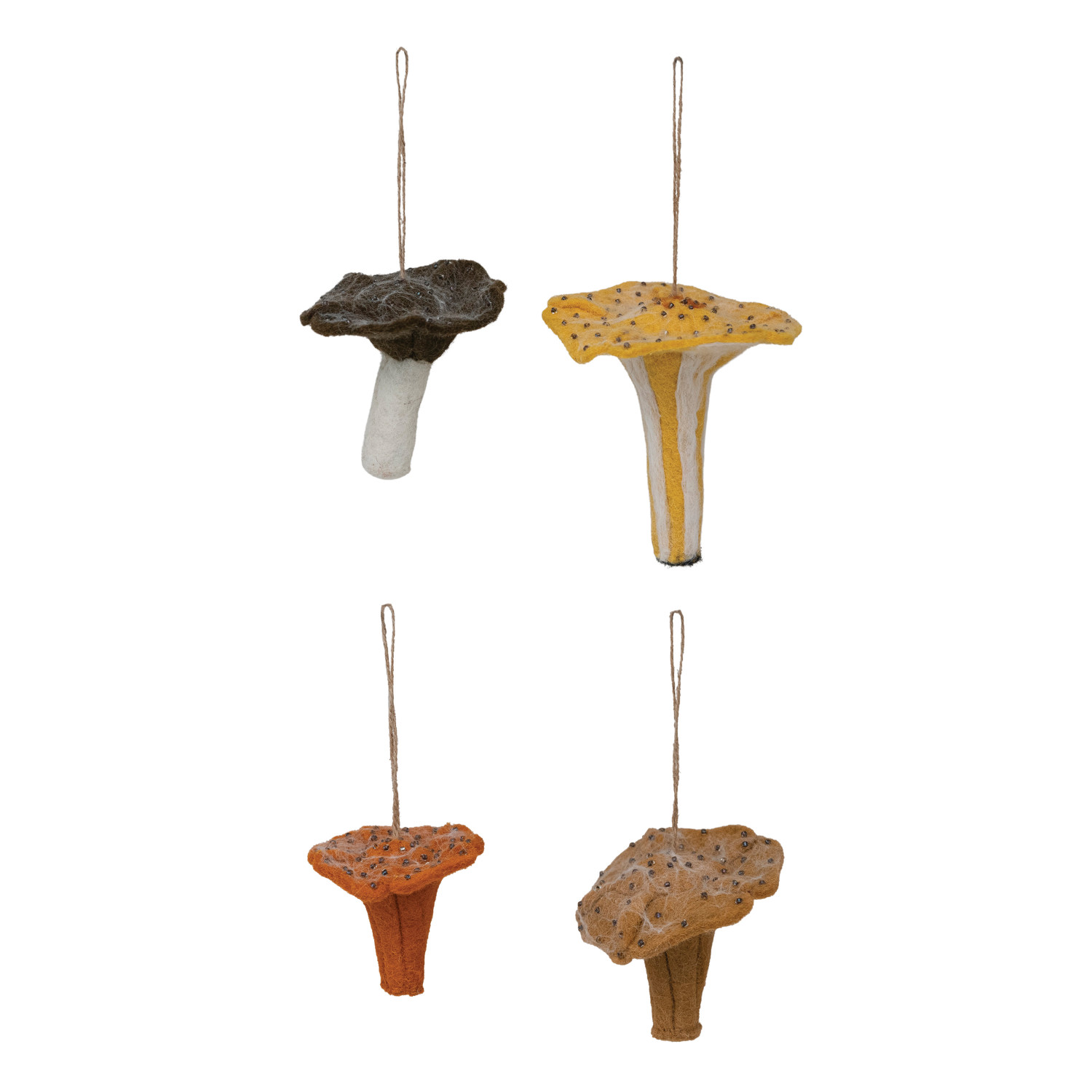 Handmade Wool Felt Mushroom Ornament with Beads, 4 Styles