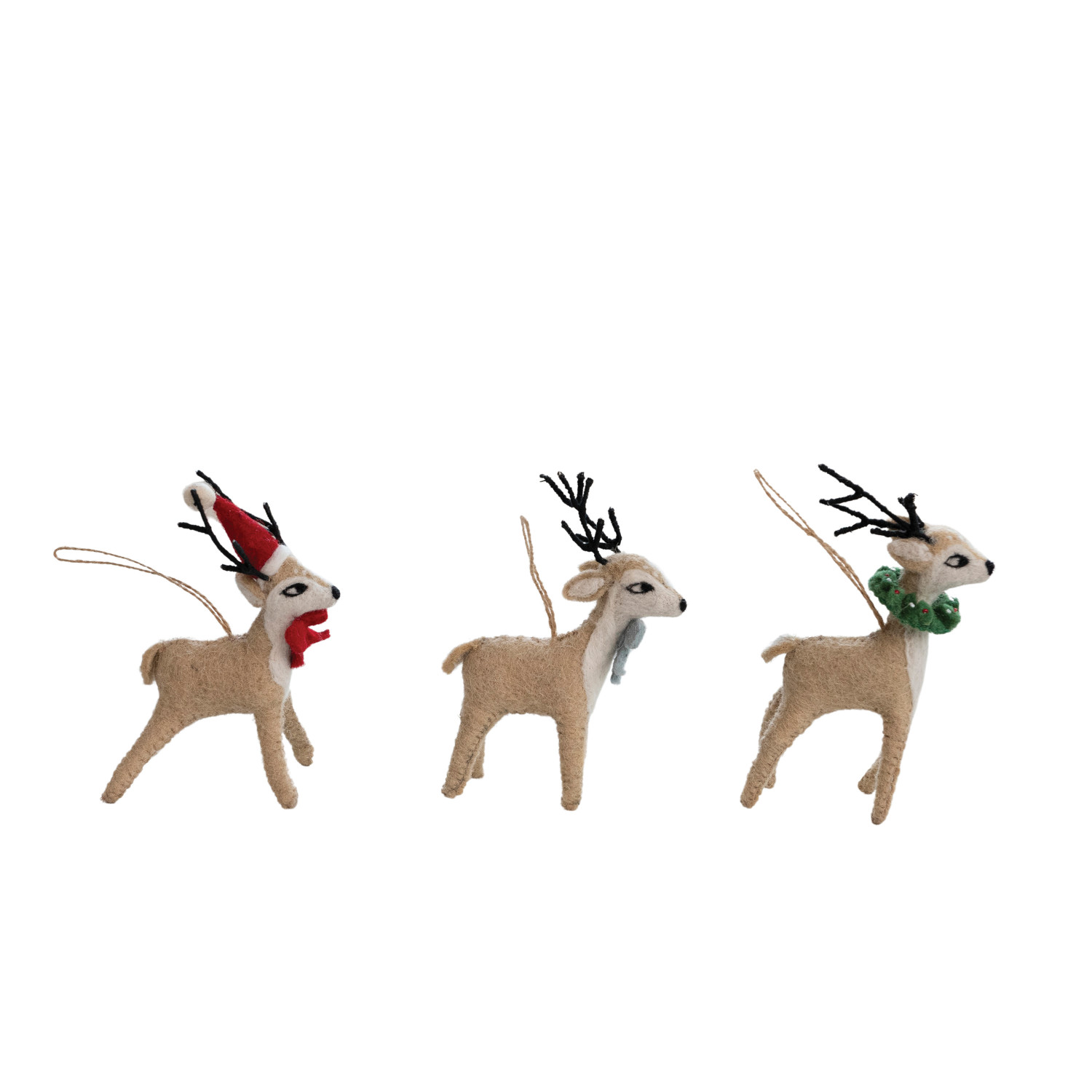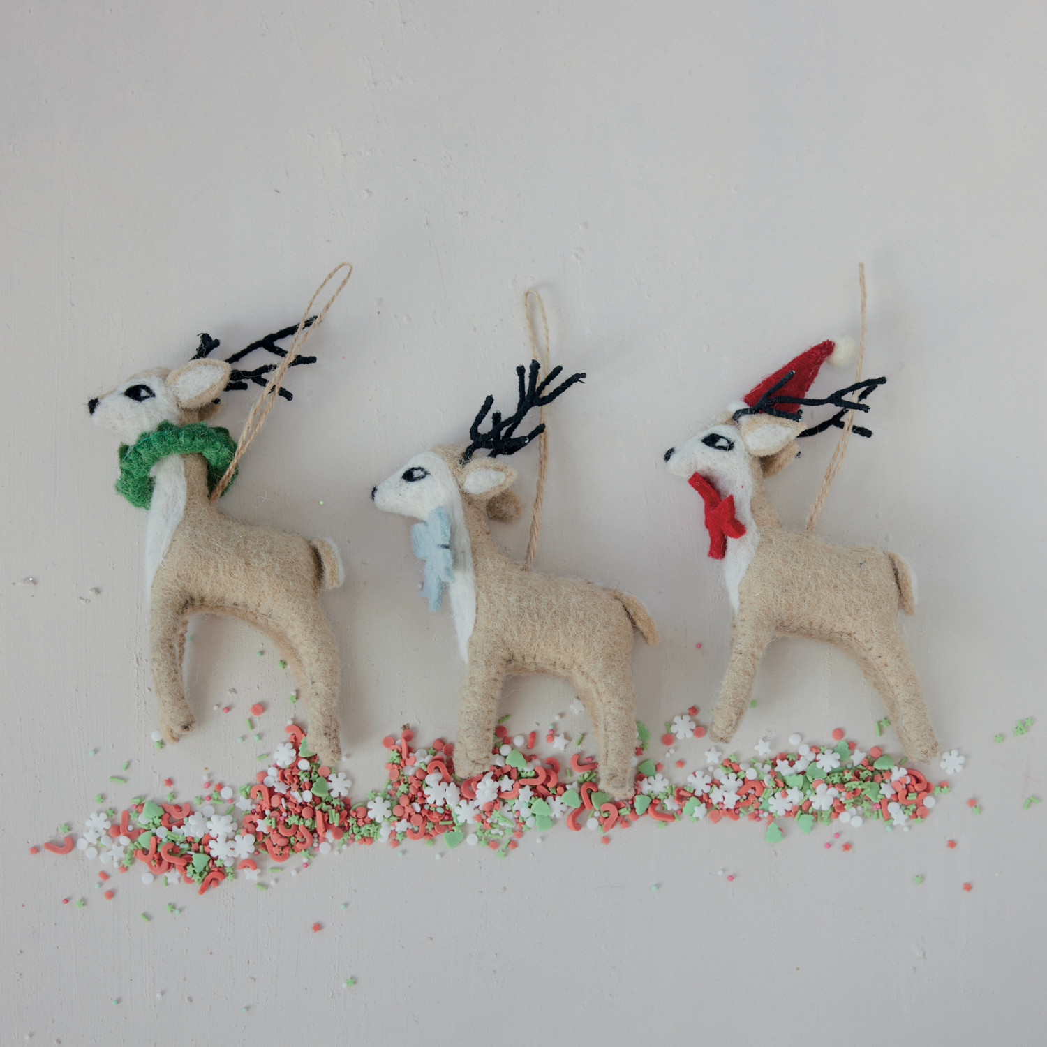 Handmade Wool Felt Reindeer Ornament, 3 Styles ©