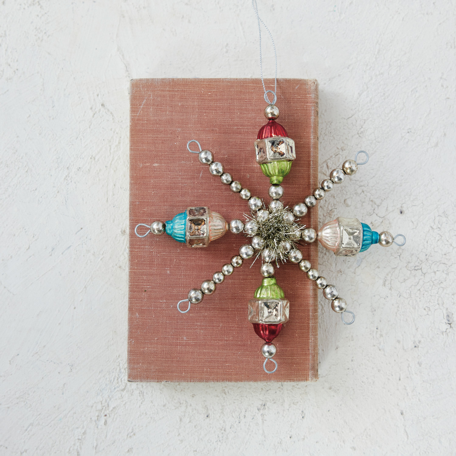 Catalog Name: 6-3/4"H Glass Snowflake Ornament w/ Tinsel, Multi Color