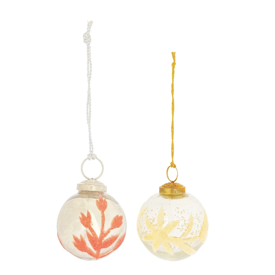 Mercury Glass Ball Ornament with Flocked Pattern, 2 Styles