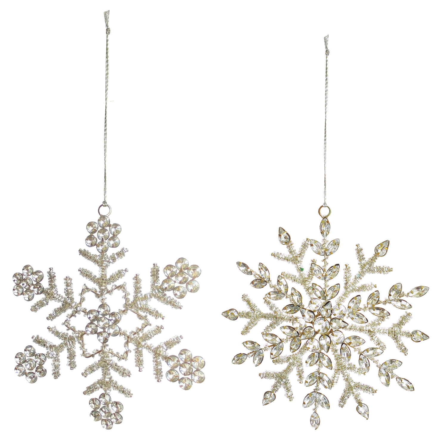 Catalog Name: 6"H - 6-3/4"H Metal & Glass Beaded Snowflake Ornament w/ Jewels, Silver Finish, 2 Styles