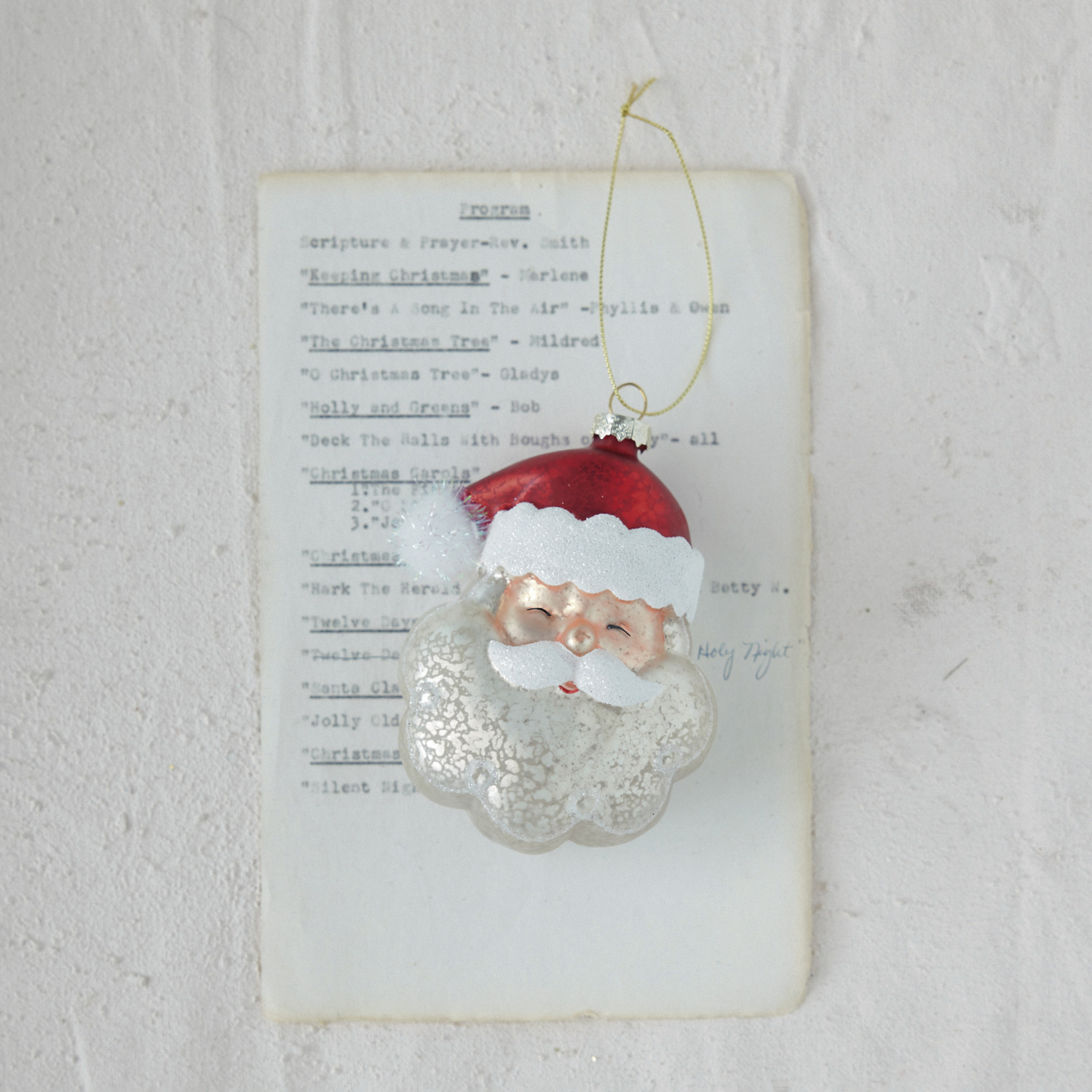 Hand-Painted Mercury Glass Santa Head Ornament, White & Red
