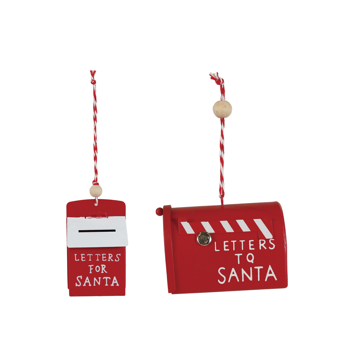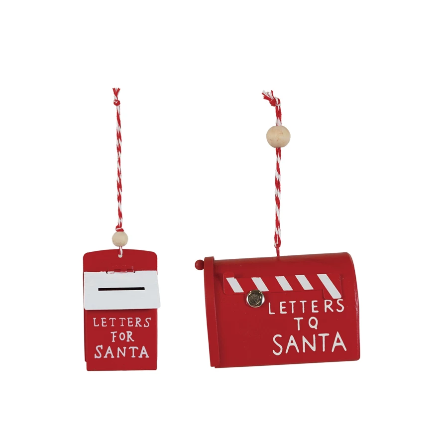 Catalog Name: 2-1/2"H - 3-1/4"H Metal Mail Box Ornament "Letters For/To Santa" w/ Wood Bead, Red & White, 2 Styles