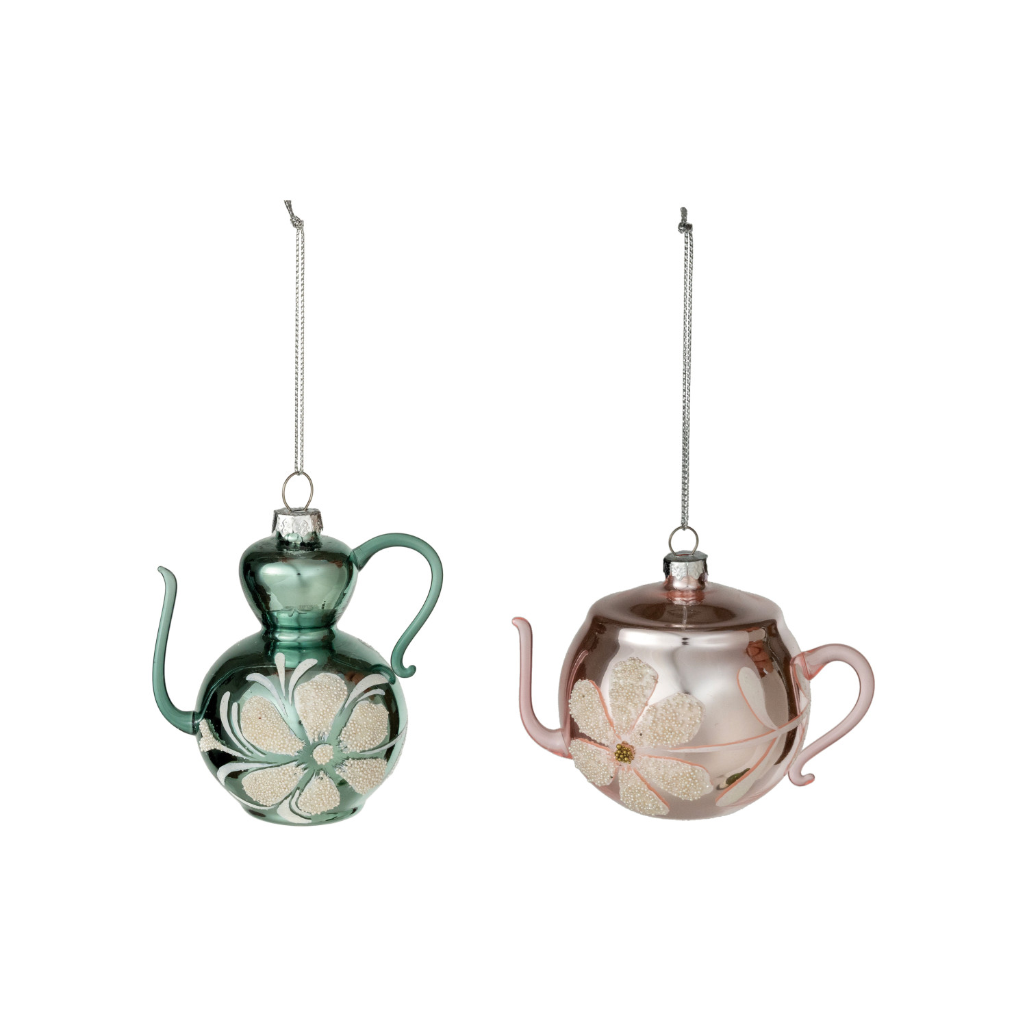 Hand-Painted Glass Teapot Ornament with Flower, 2 Styles