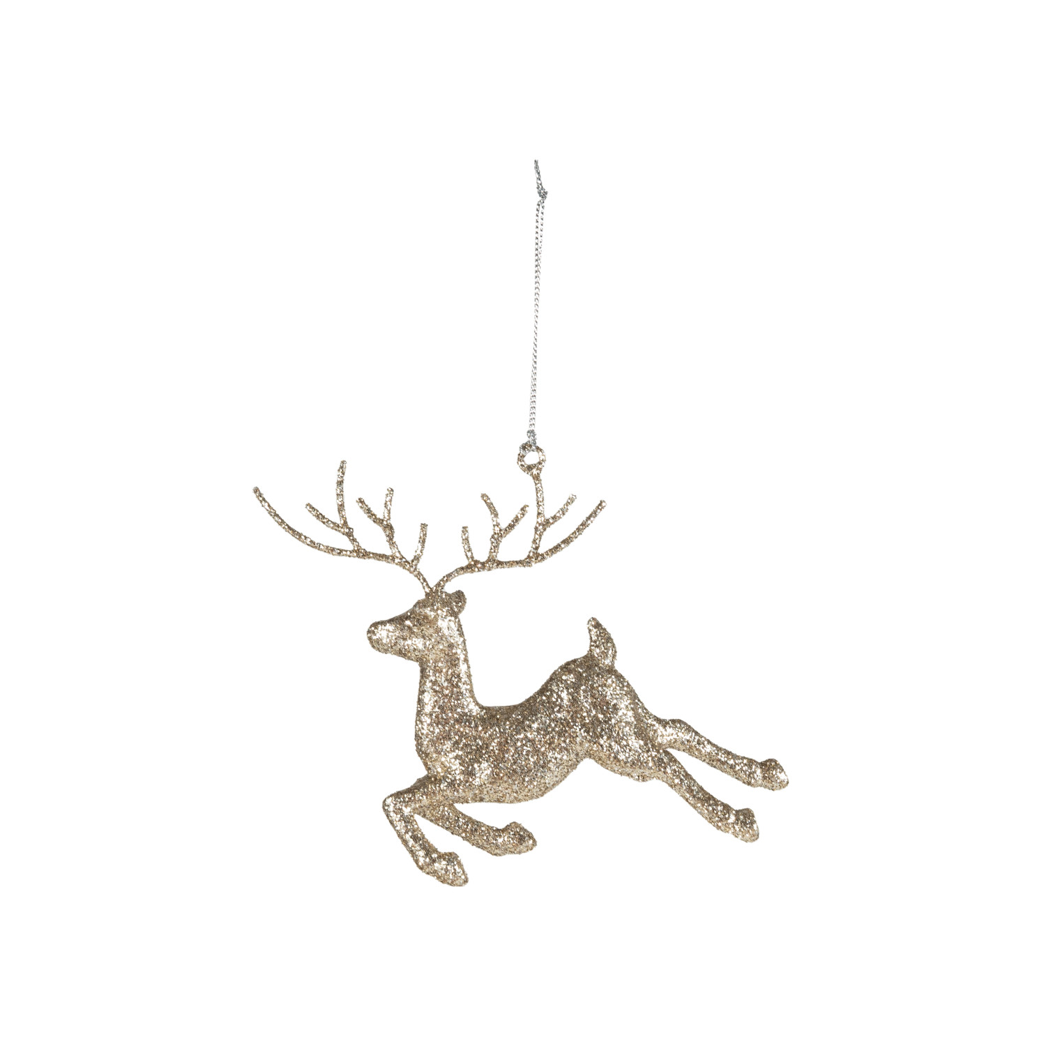 Catalog Name: 6-1/2"L x 5"H Acrylic Reindeer Ornament w/ Glitter, Champagne Finish