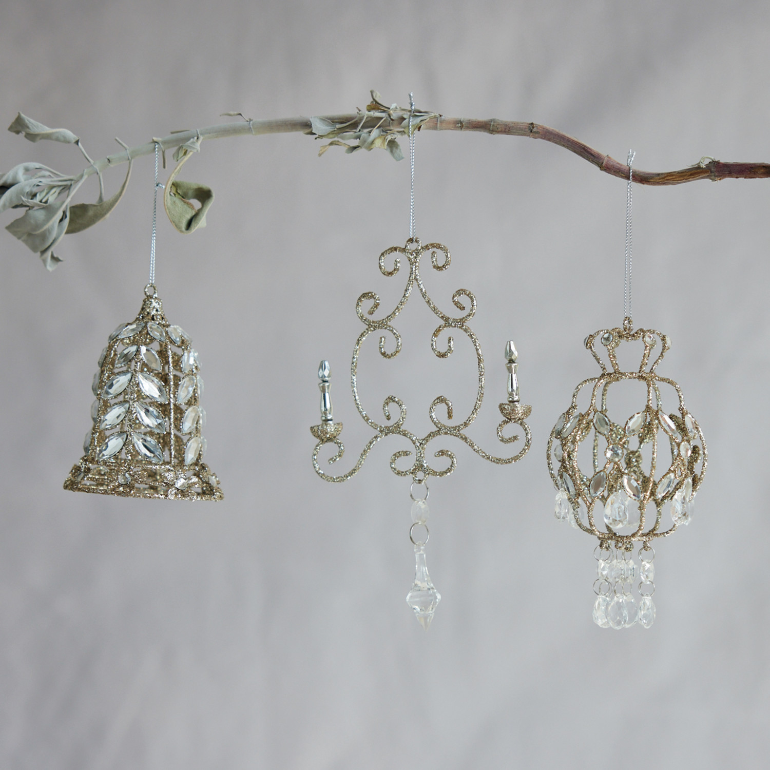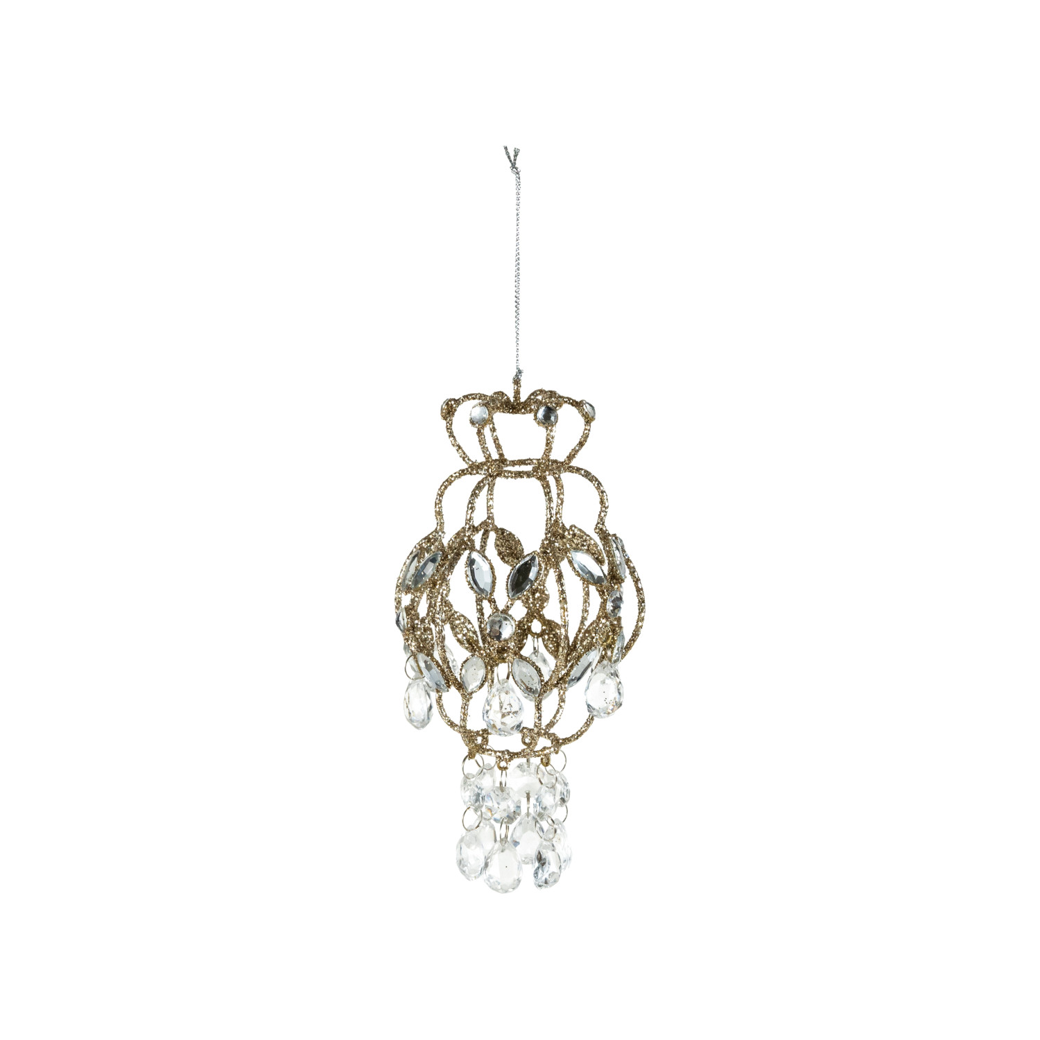 Metal Chandelier Ornament with Acrylic Crystals & Glitter