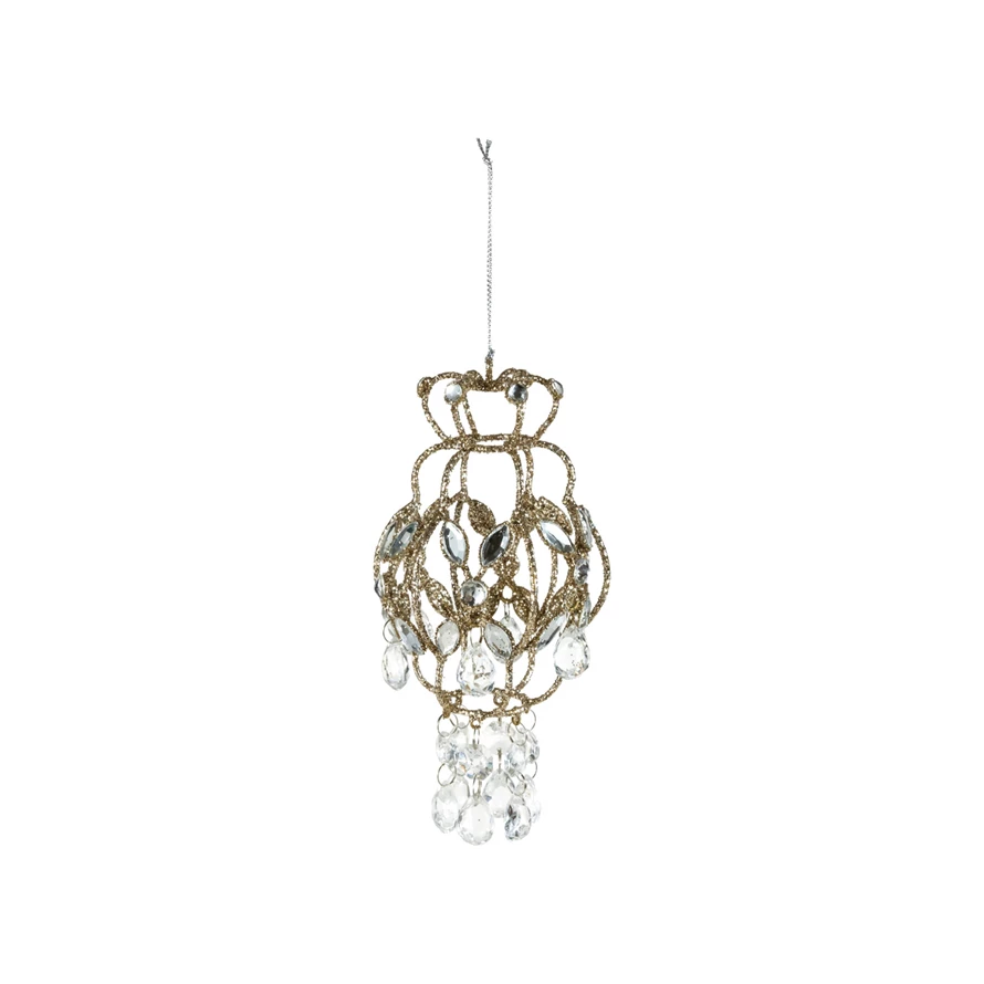 Catalog Name: 6"H Metal Chandelier Ornament w/ Acrylic Crystals & Glitter, Champagne Finish