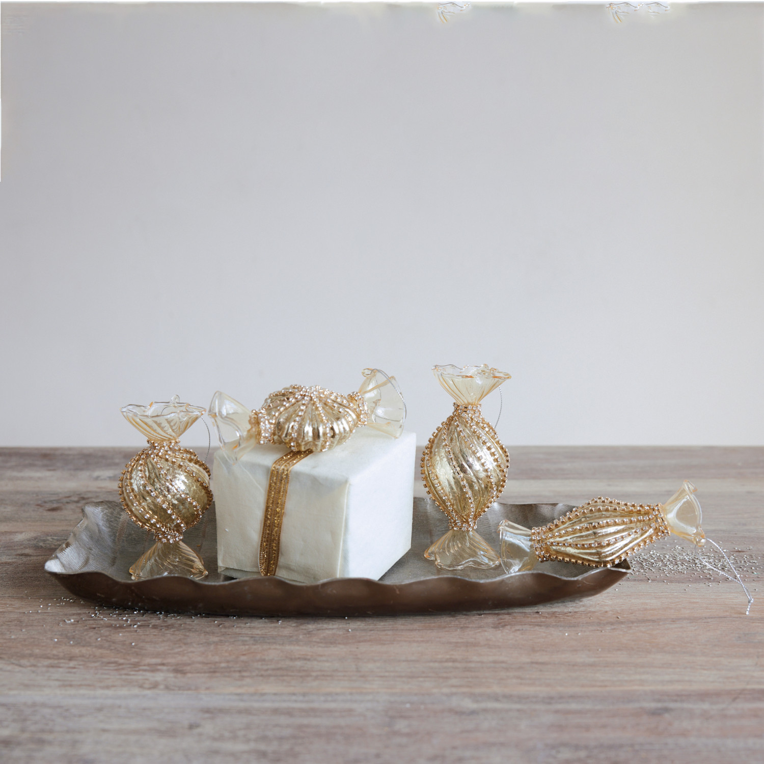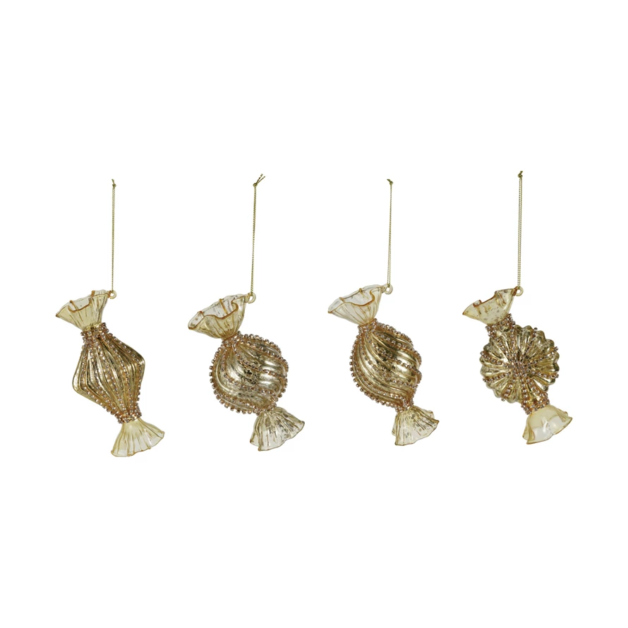Mercury Glass Candy Ornament with Jewels, Gold Finish, 4 Styles