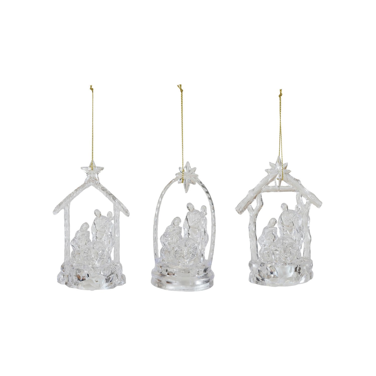 Catalog Name: 5"H Plastic Holy Family Ornament w/ LED Light, 3 Styles (Batteries Included)