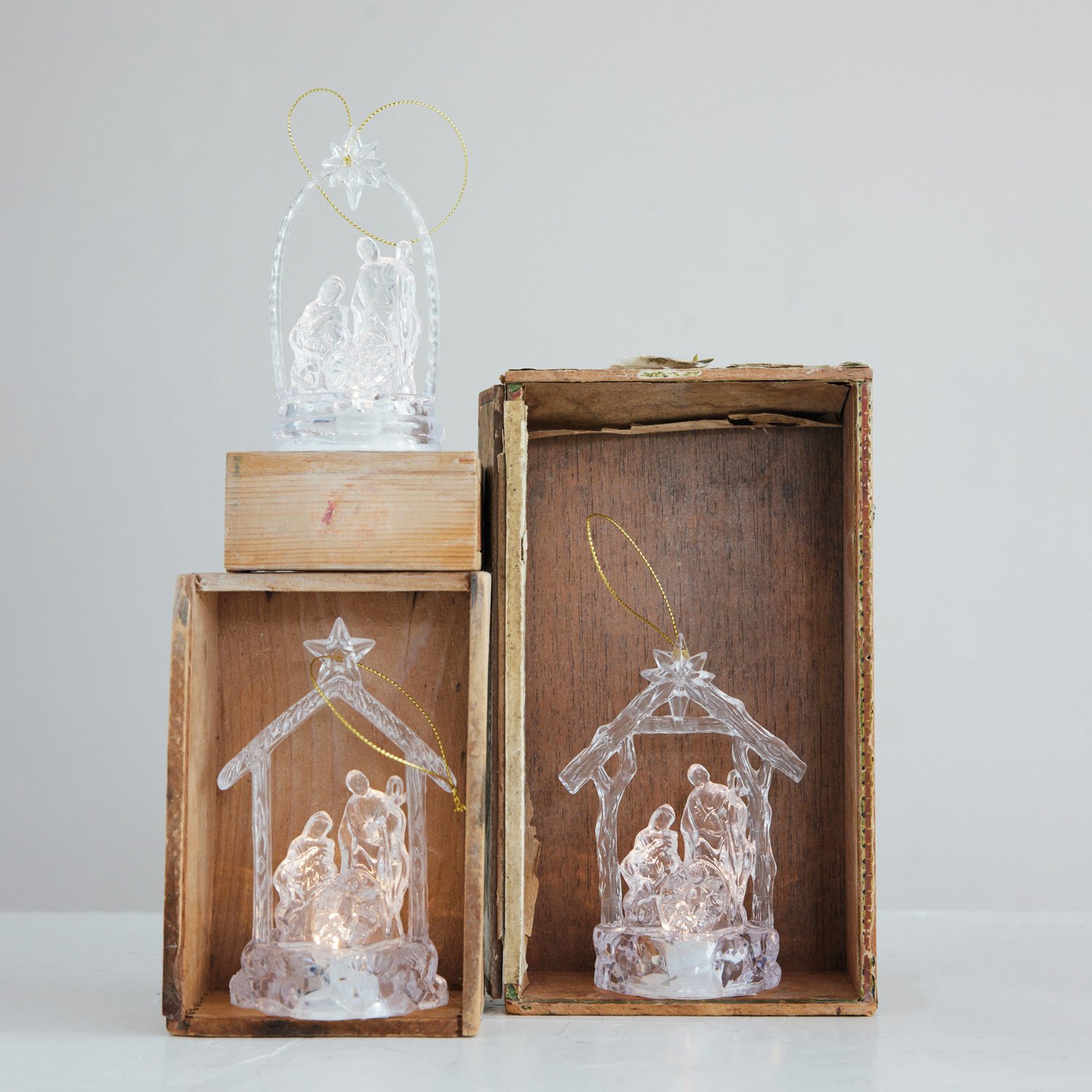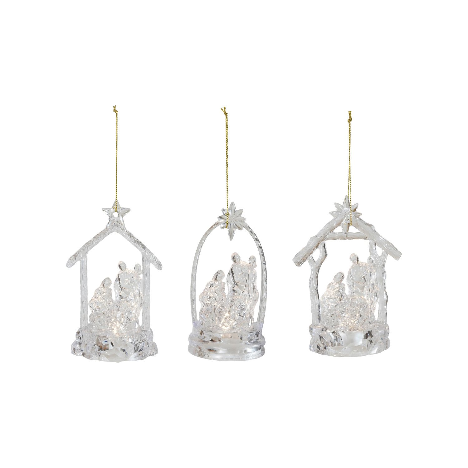 Plastic Holy Family Ornament with LED Light, 3 Styles (Batteries Included)