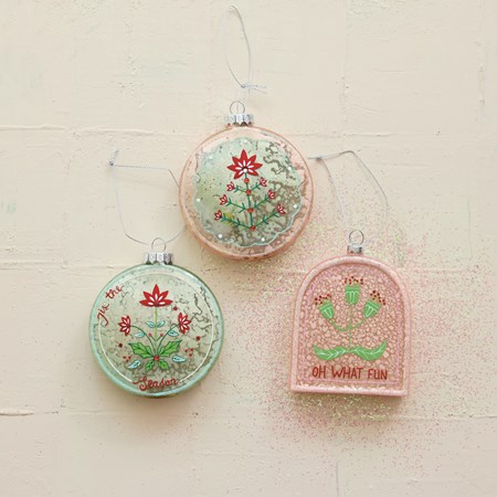 Catalog Name: 3-3/4"H Glass House Ornament w/ LED Light "Chalet", Multi Color (Batteries Included)