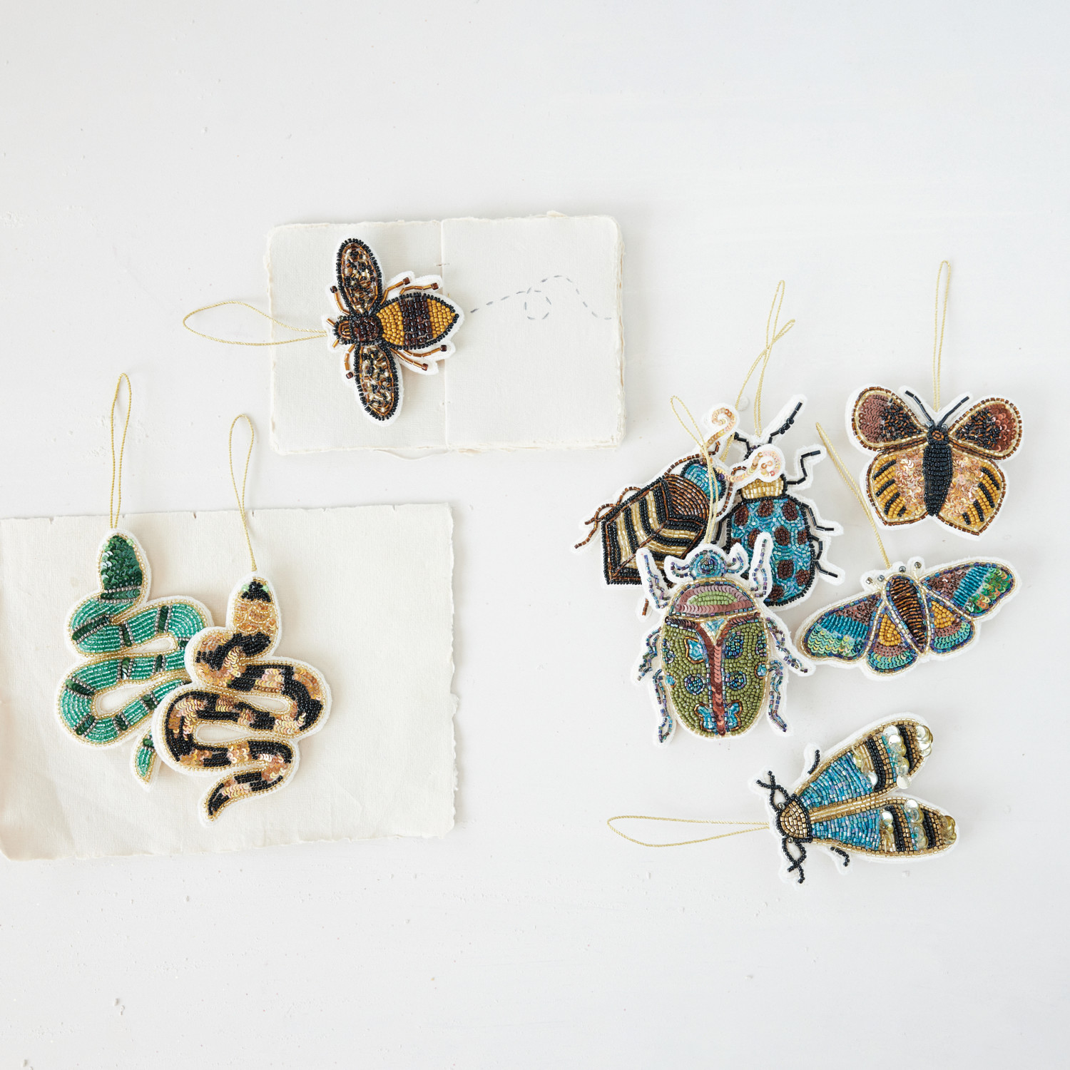 Handmade Fabric Beaded Snake Ornament with Sequins, 2 Styles