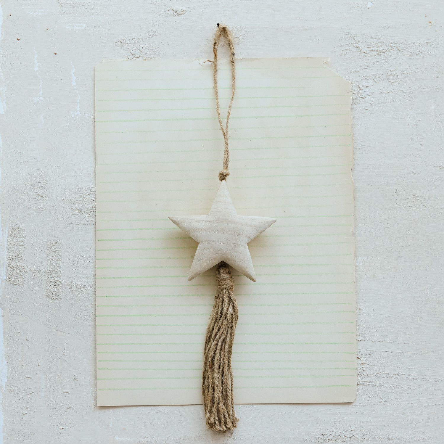 Paulownia Wood Star Ornament with Jute Tassel, Natural