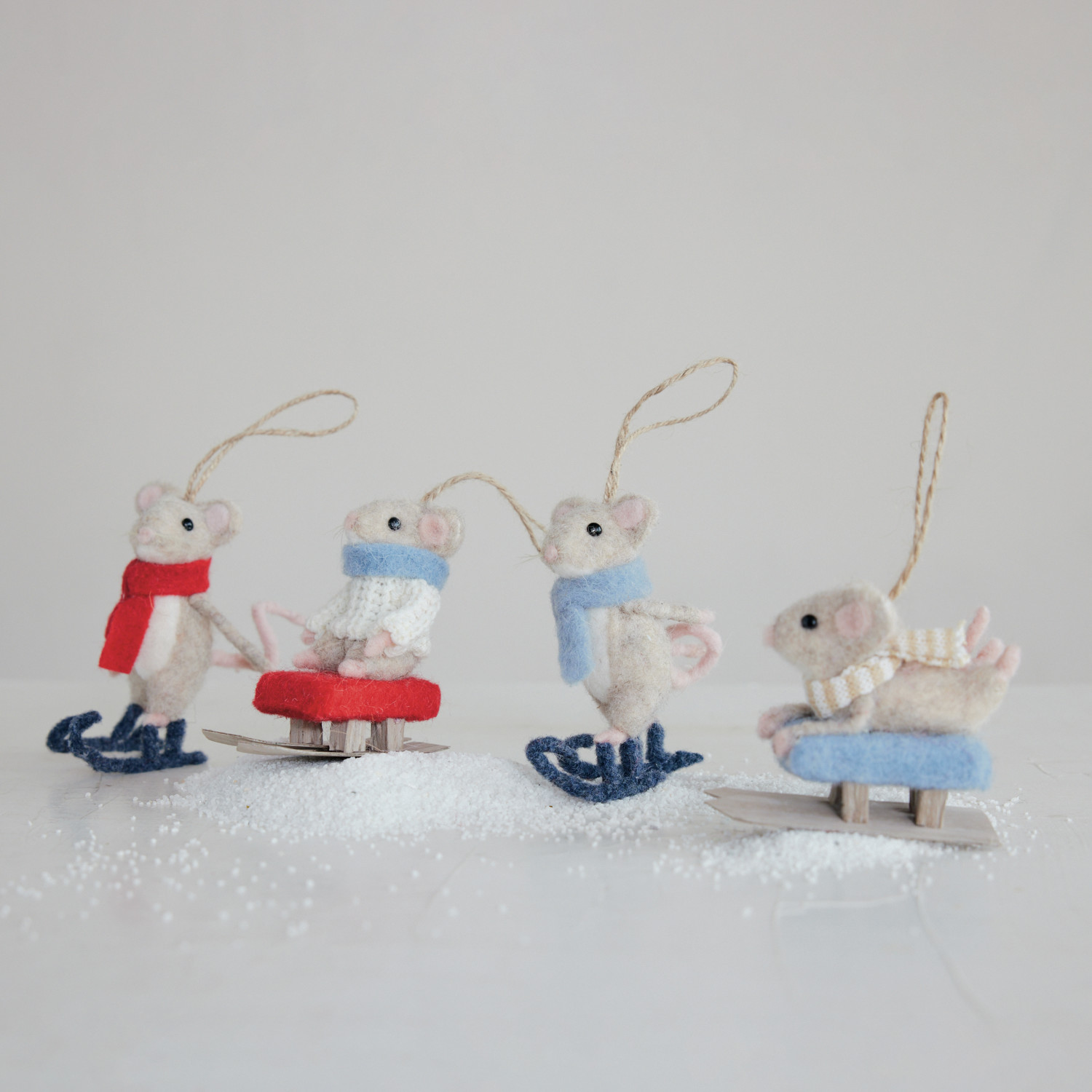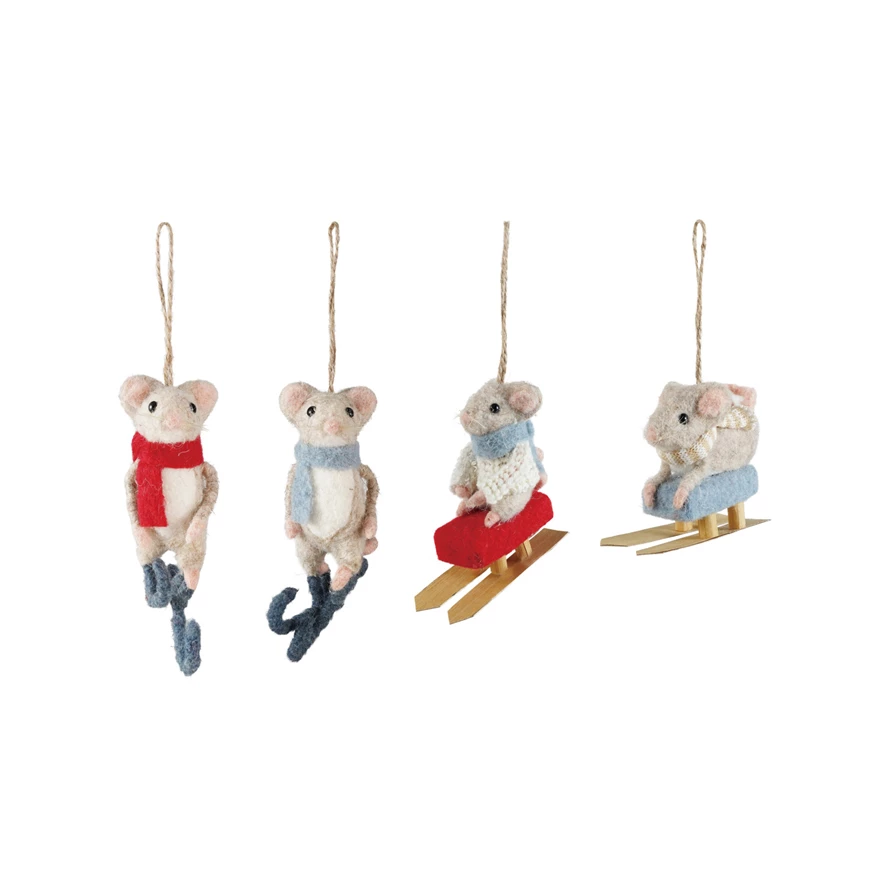 Felt Mouse on Sled/Skates Ornament, 4 Styles