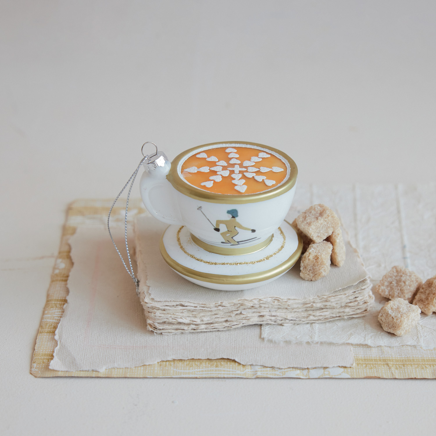 Catalog Name: 3-1/4"L Hand-Painted Glass Mug w/ Saucer Ornament, Multi Color