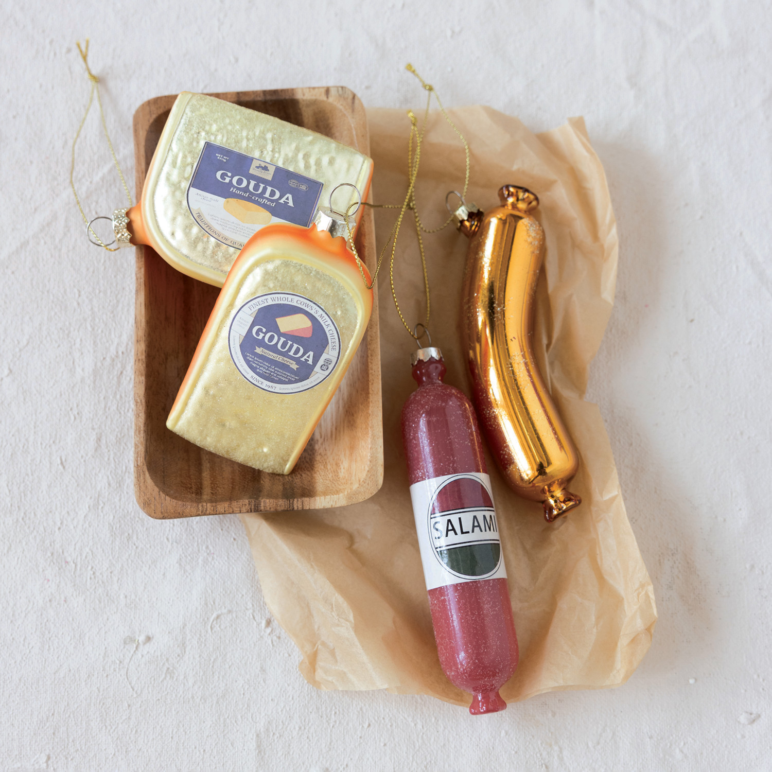 Hand-Painted Glass Cheese/Salami Ornament, 4 Styles