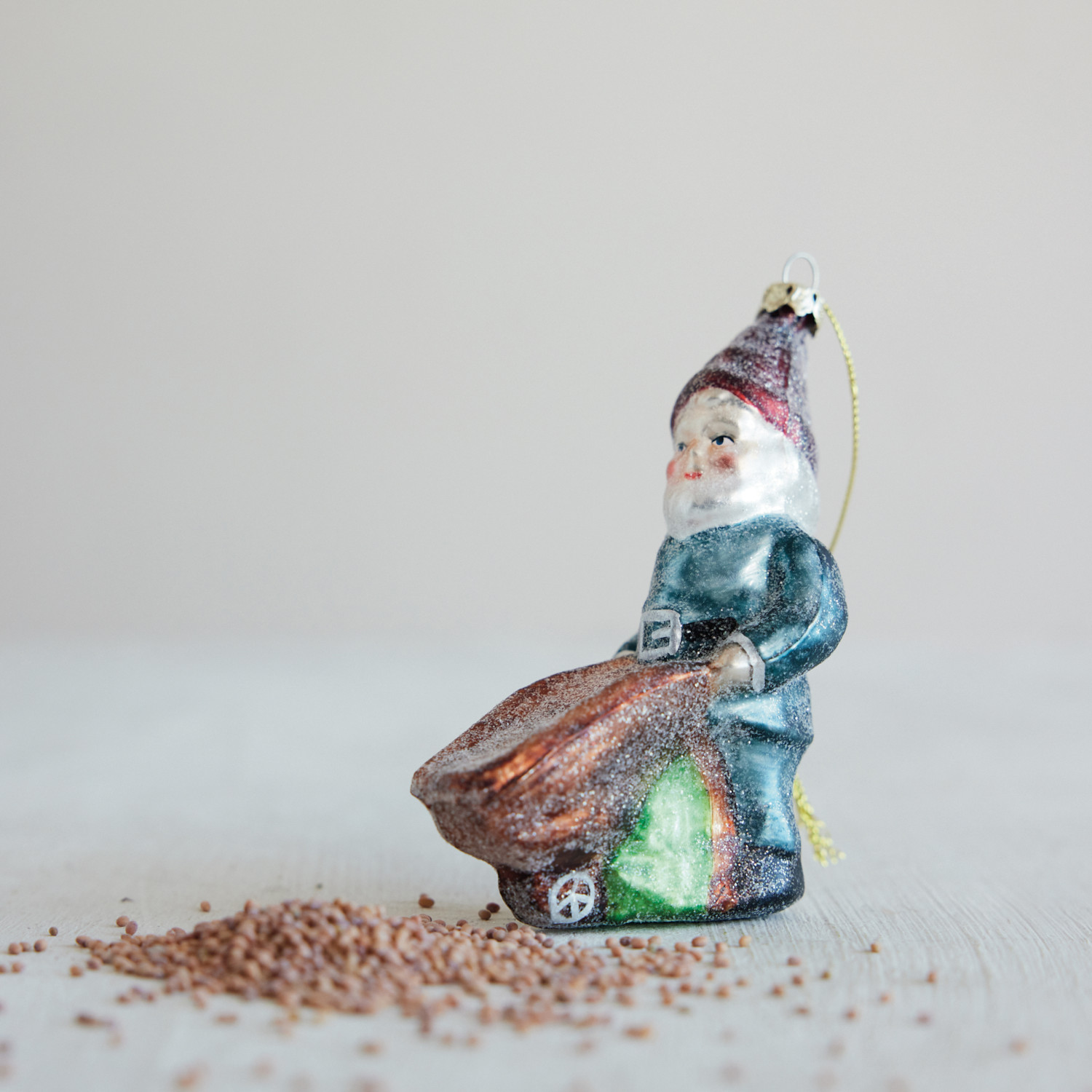 Hand-Painted Mercury Glass Garden Gnome Ornament with Wheelbarrow & Glitter