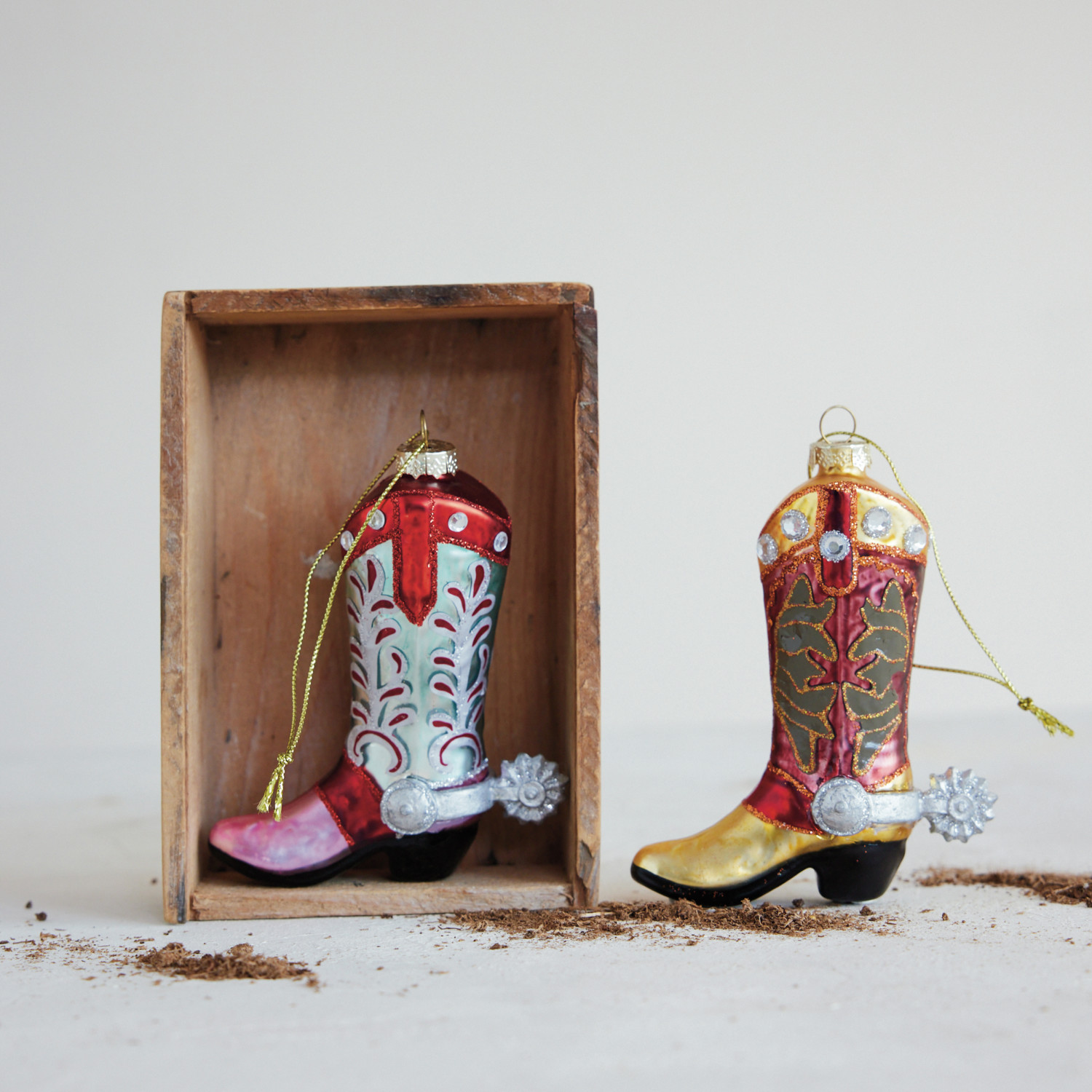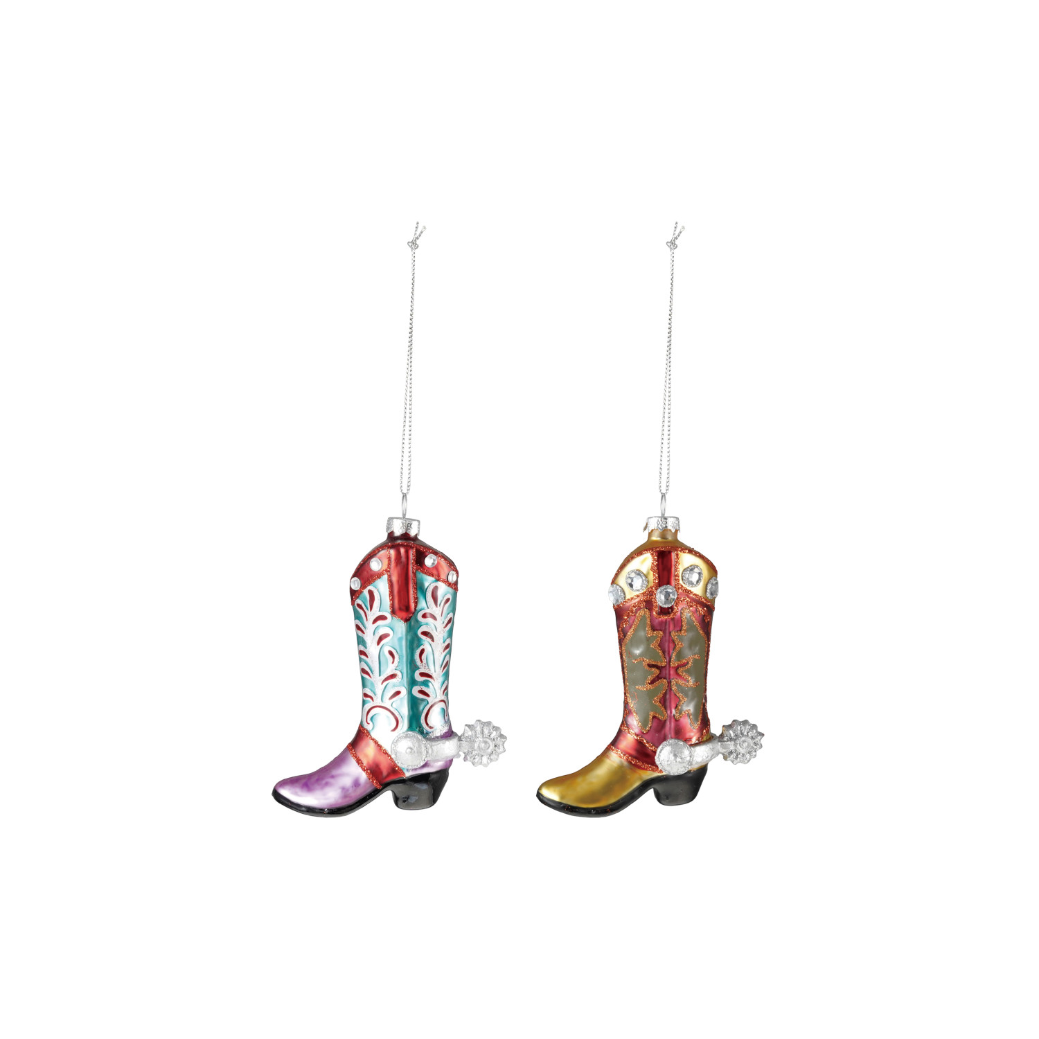 Hand-Painted Glass Cowboy Boot Ornament with Glitter & Jewels, 2 Styles
