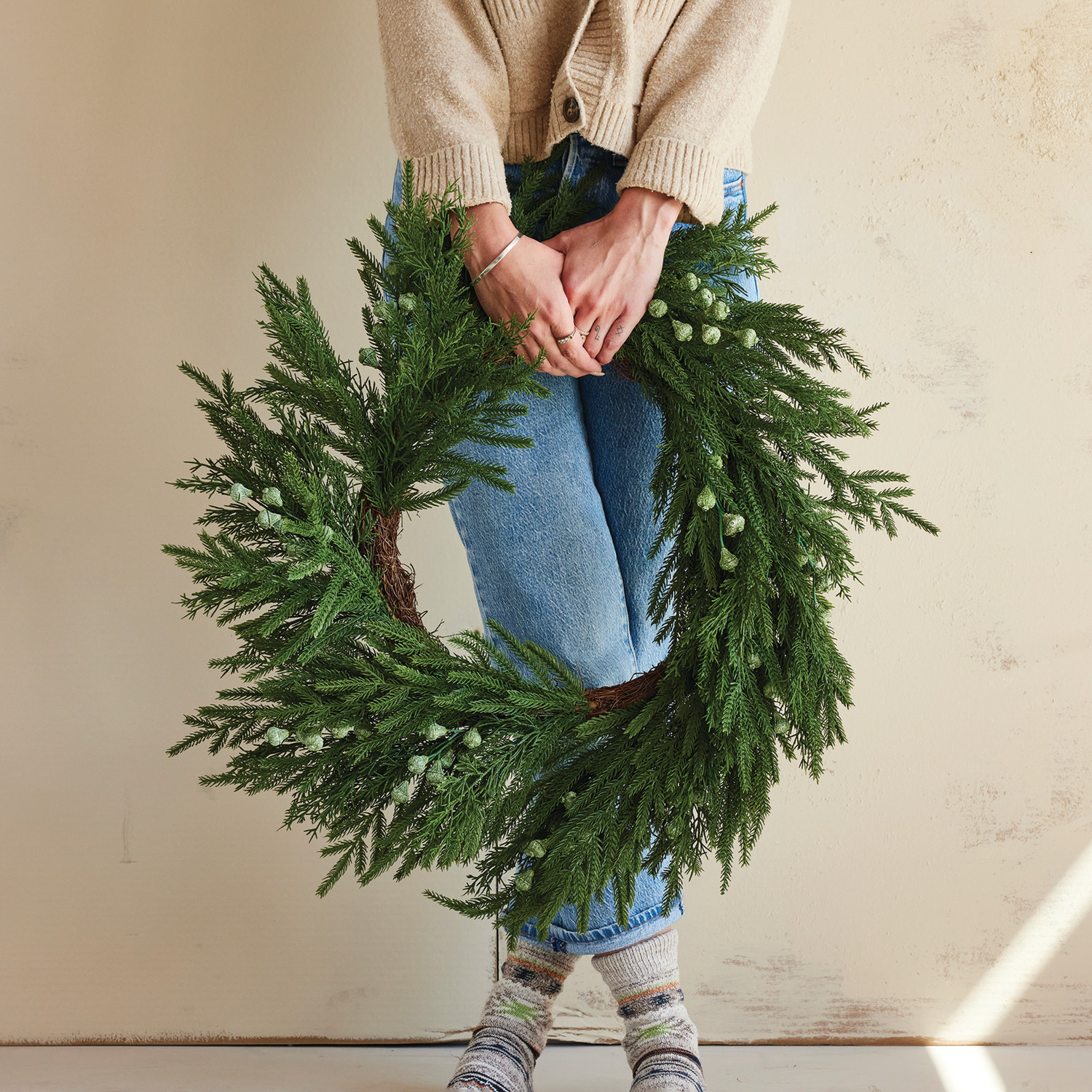 28" Round Faux Cypress Wreath with Eucalyptus Pods