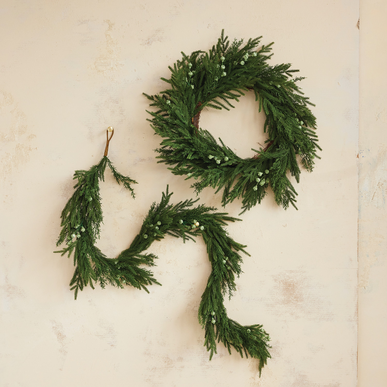 Catalog Name: 28" Round Faux Cypress Wreath w/ Eucalyptus Pods