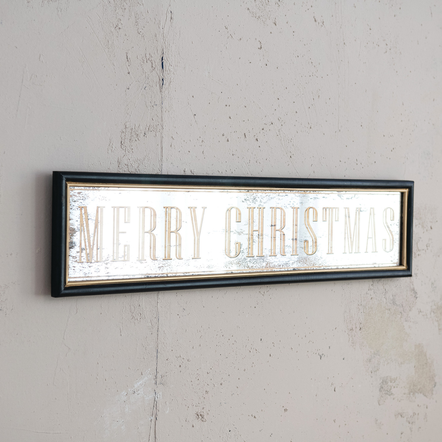 Catalog Name: 32"W x 7-1/2"H MDF Wall Décor w/ Antiqued Mirror "Merry Christmas", Black & Gold Finish