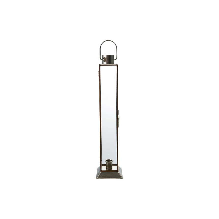 Catalog Name: 3-1/2" Square x 14-1/4"H Metal & Glass Lantern Taper Holder, Gold Finish