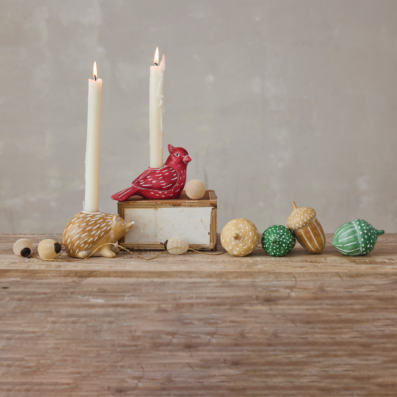 Resin Bird Taper Holder, Wood Finish, Red & White ©