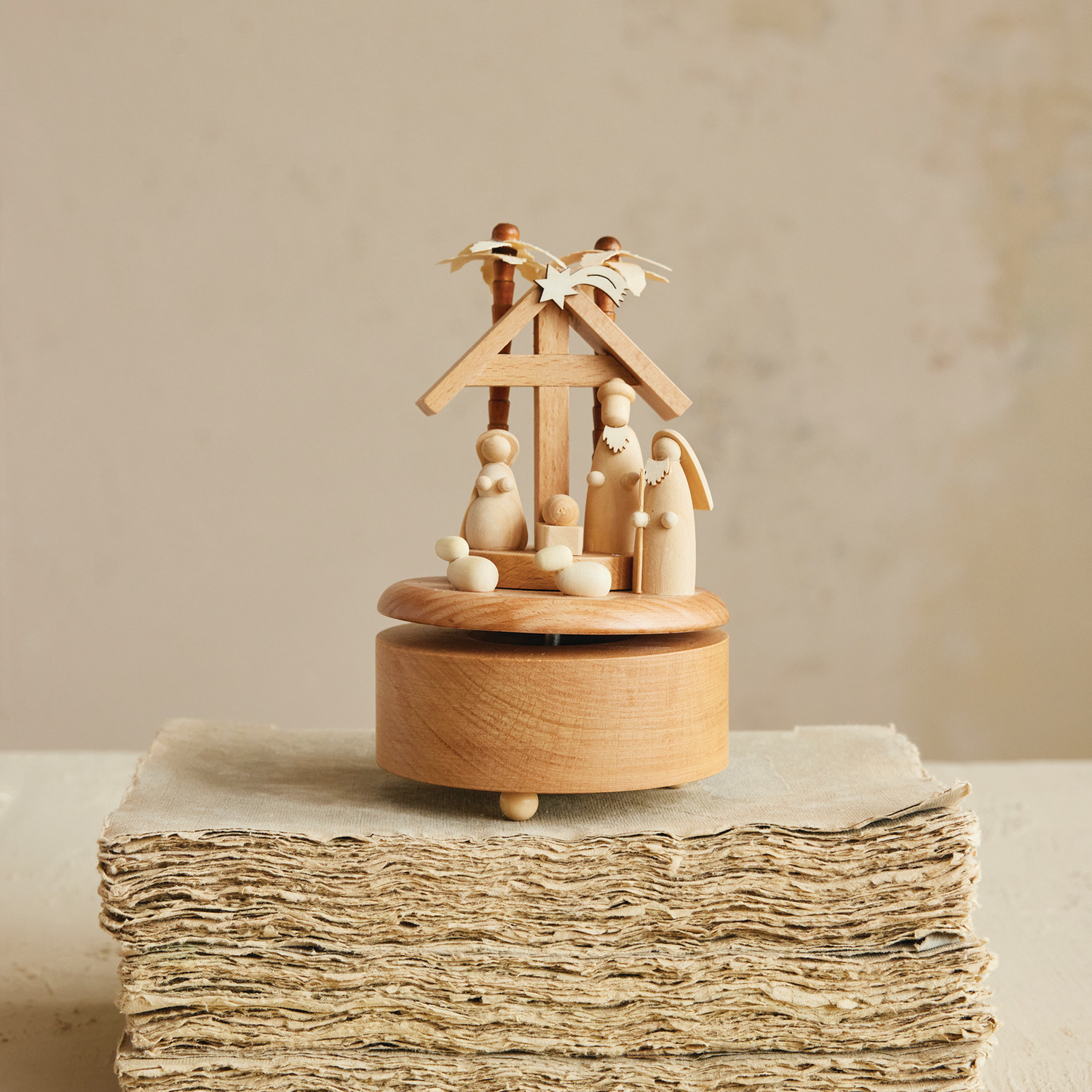 Wood Wind-Up Nativity Music Box, Plays "Oh Holy Night"