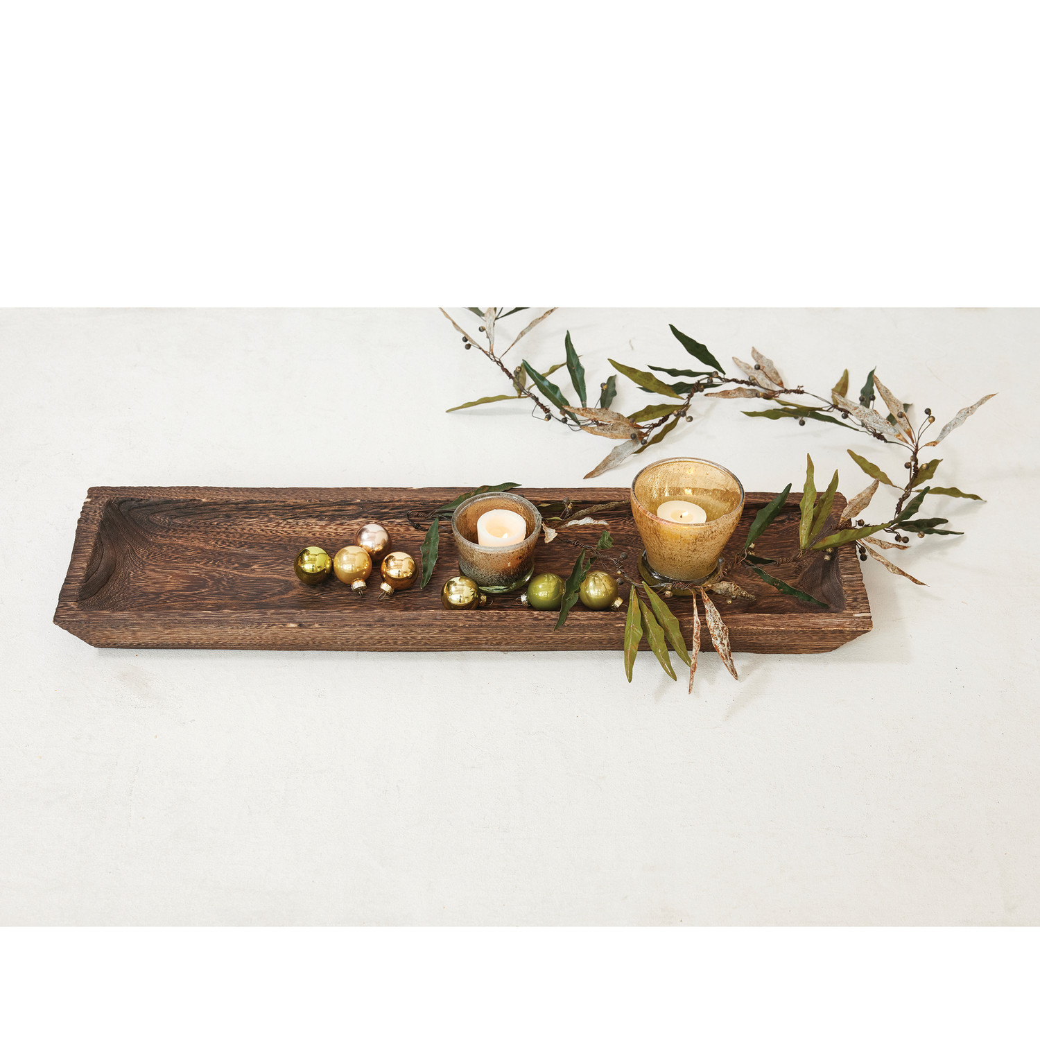 Catalog Name: 27-1/2"L x 7"W Decorative Paulownia Wood Tray, Walnut Finish